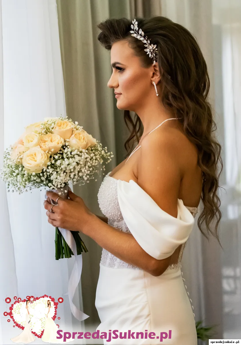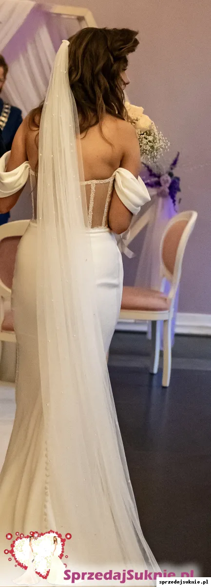 Piękna suknia z dlugim trenem, który można dopiąć do sukni. Cena w salonie 5000 zł, sprzedam za połowę ceny. Możliwość przymiarki. Rozmiar 36/38.
