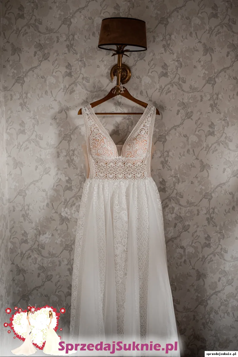 Folk Boho suknia ślubna rozmiar L