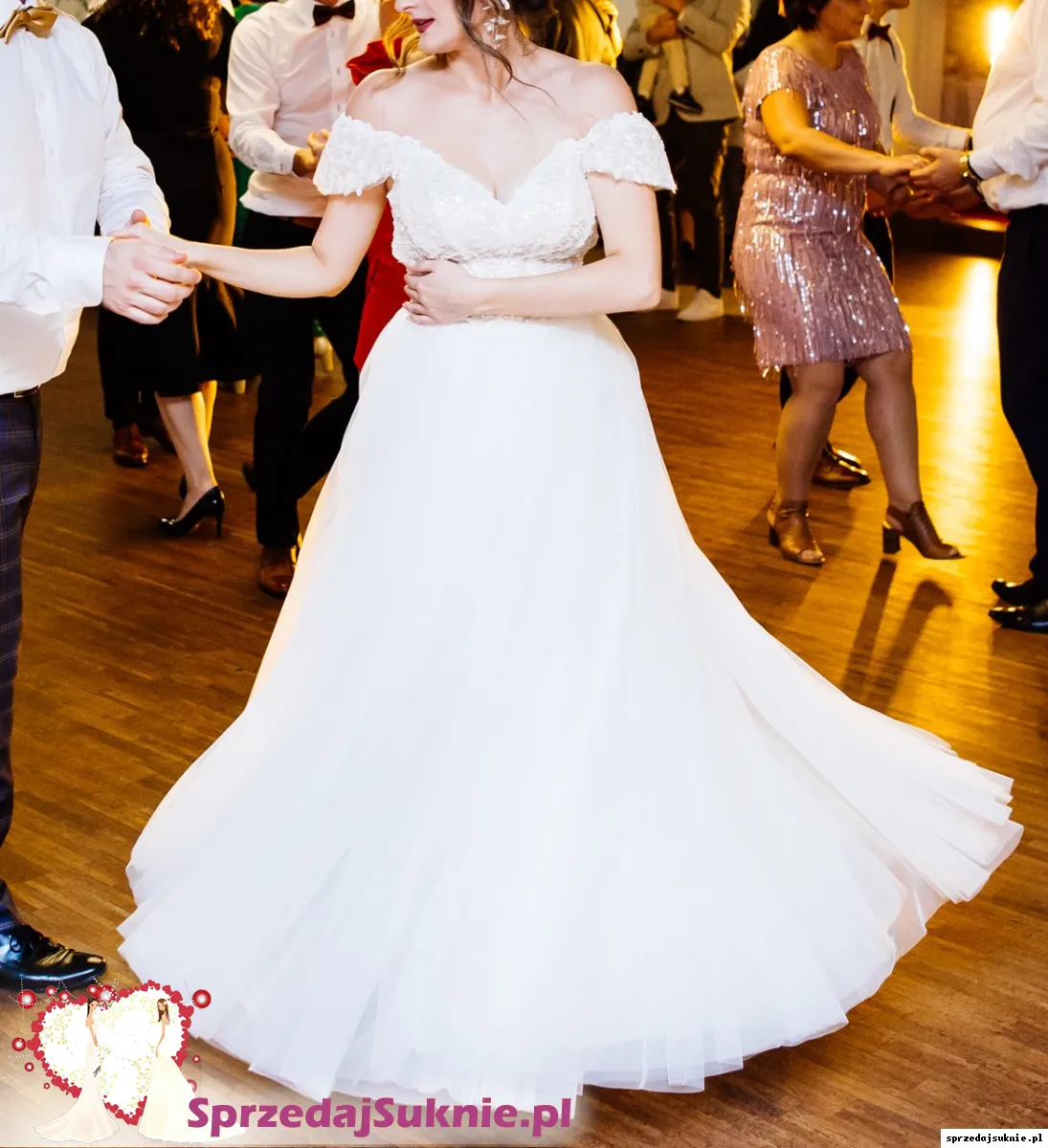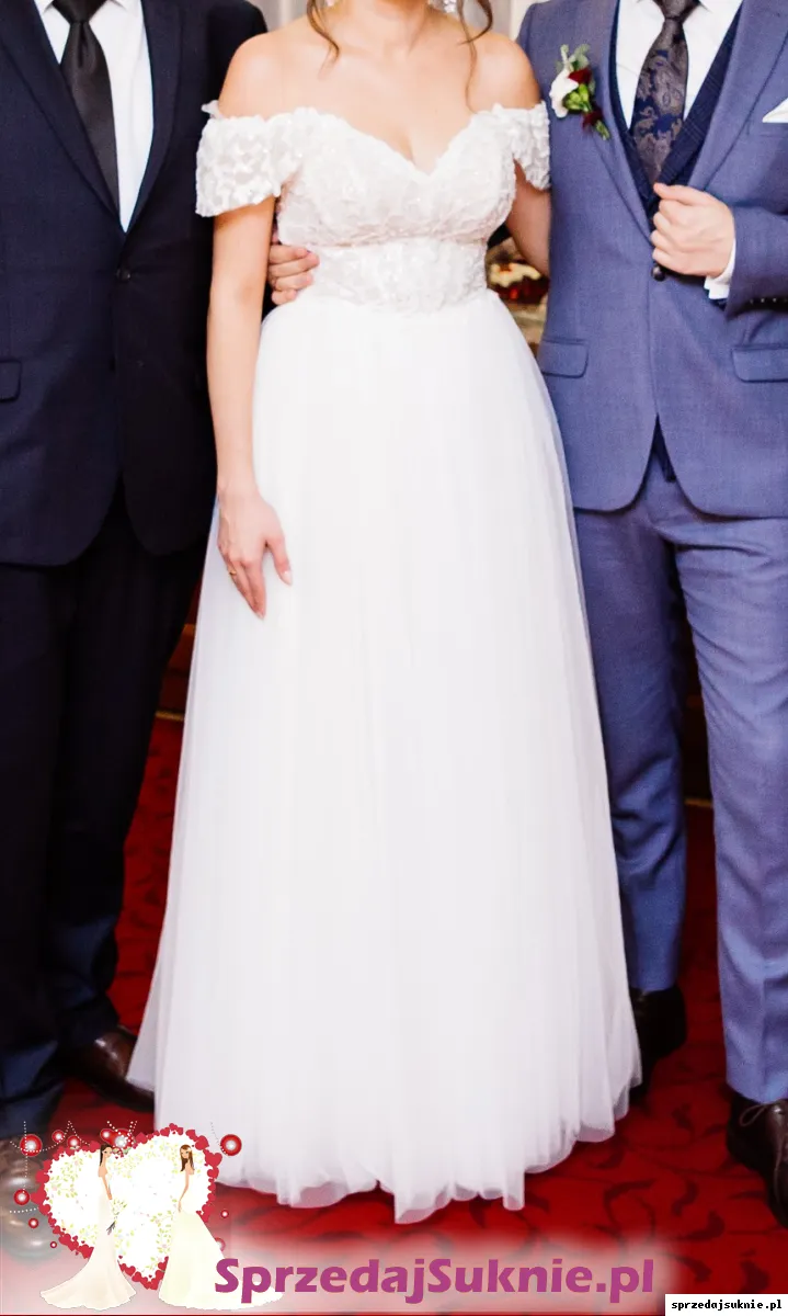 Suknia jest wyczyszczona i przechowywana w oryginalnym pokrowcu.
