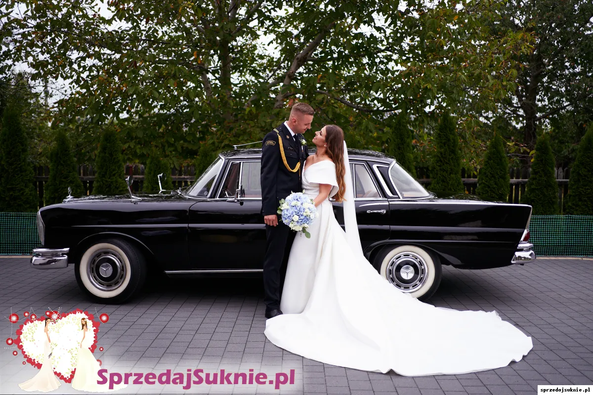 Ogromnym atutem sukni jest dopinany w pasie tren, dzięki niemu mamy efekt dwóch sukni. Na ślub i bardziej oficjalną część można użyć trenu, do tańca i zabawy można go zdjąć.