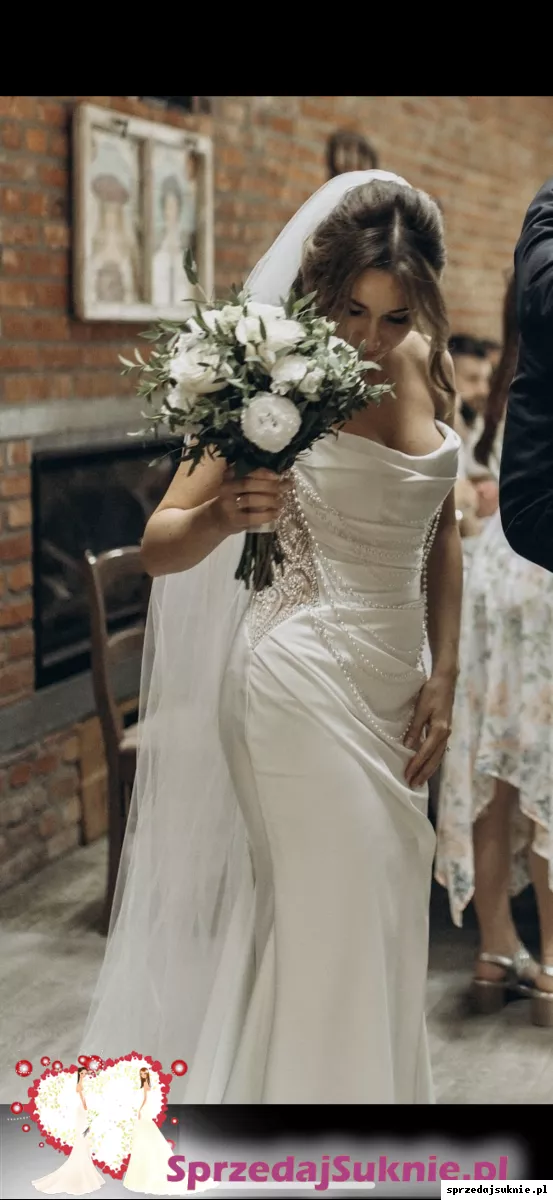 Suknia podpinana na 3 przezroczyste guziki, lekka, swobodnie układająca się w tańcu, nie spadała mi w żadnym momencie mimo braku ramiączek.