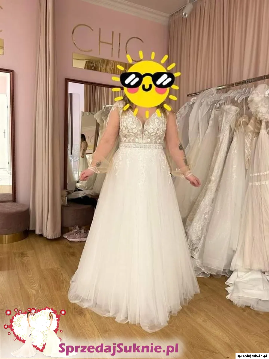 Sprzedam NOWĄ suknię ślubną zakupiona w salonie Chic by Magda Flig w Koninie. Suknia została zakupiona w roku 2024. Suknia jest opcja 2in1, posiada odpinane rękawy, które można odpiąć i zostaje suknia na grubszych ramiączkach. Rękawy zostały do dopasowania przez potencjalną kupująca, ponieważ, ja tego nie wykonałam z racji tego, że ślub się nie odbył.