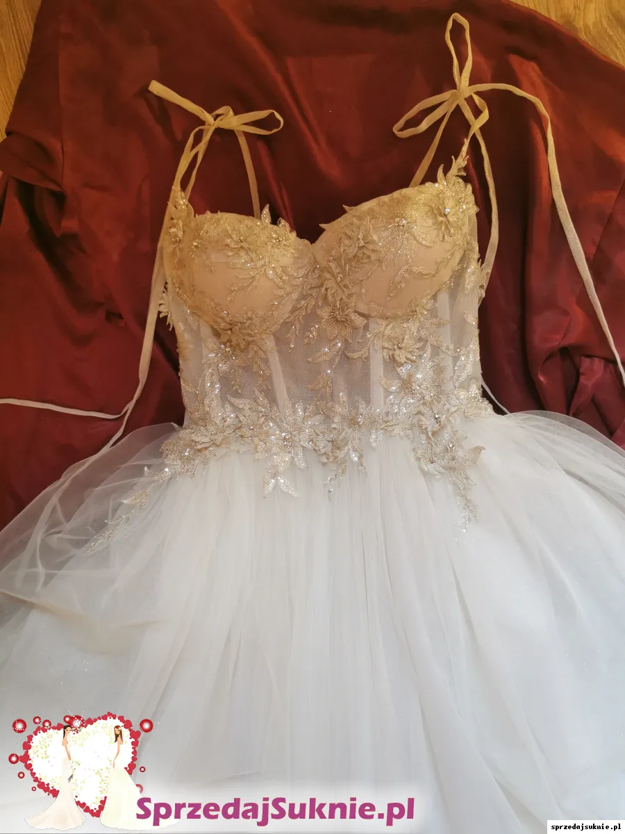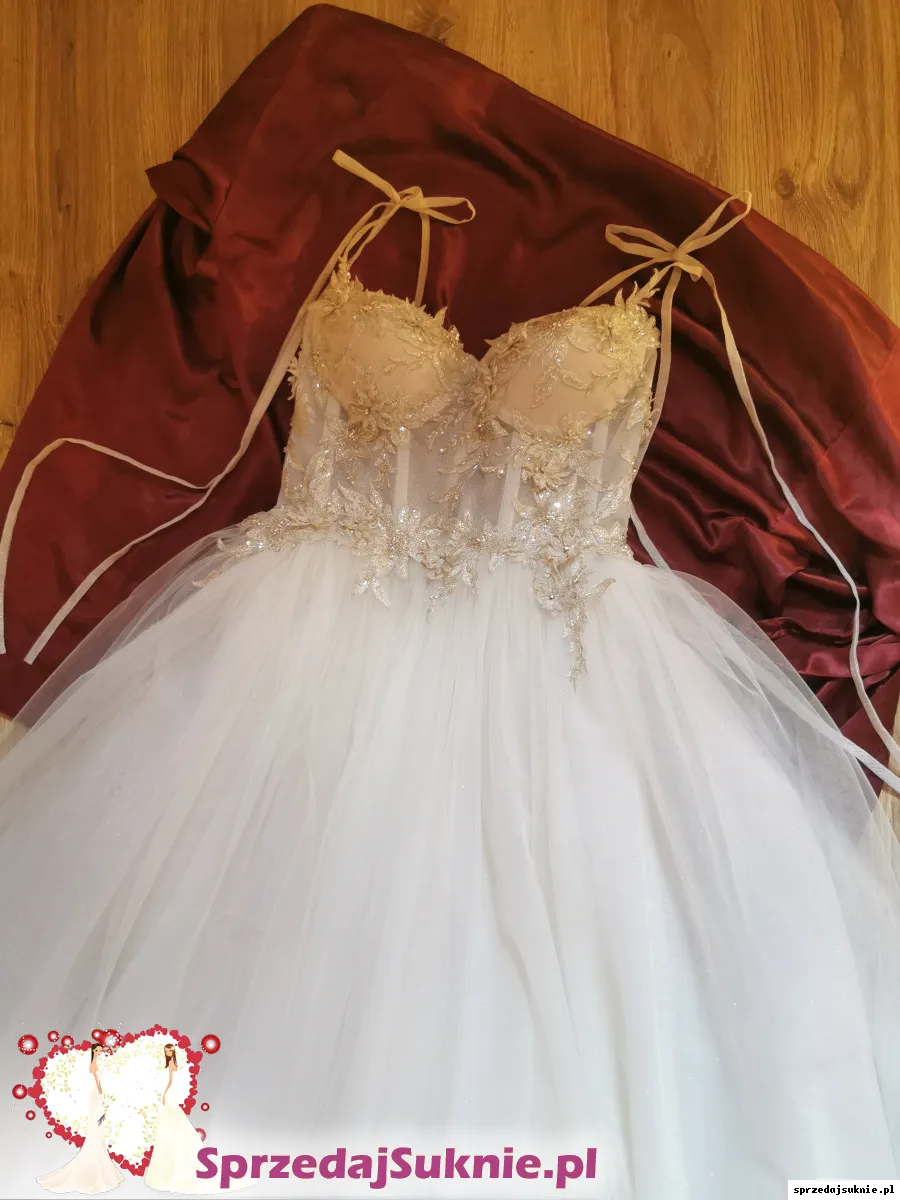 aniaPi臋kna suknia szyta na zamówienie na maj/ czerwiec 2021r. Posiada 5 warstw tiulu, w tym brokat i platyn臋. Od spodu warstwa podszewki i satyny, dzi臋ki której suknia pi臋knie si臋 uk艂ada, a tiul nie wpl膮tuje si臋 pod buty. Najmodniejsze trendy tego roku: bieli藕niany gorset, rustykalne, platynowe kwiaty, delikatne wi膮zania na kokardki.