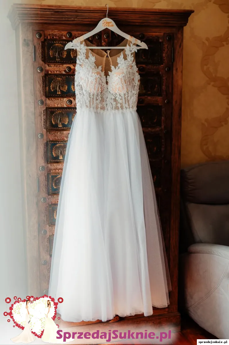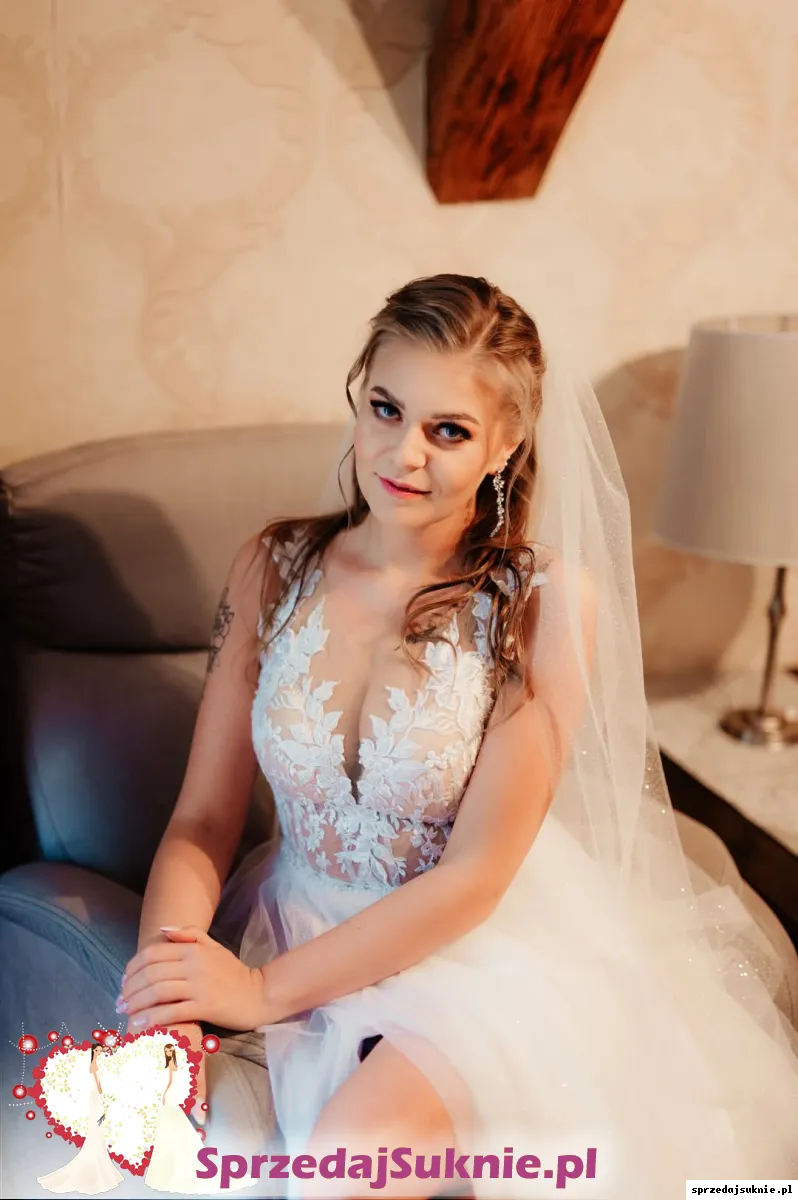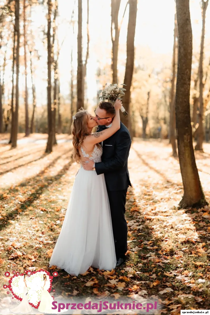 Sprzedam przepiękną suknie ślubną szytą na zamówienie w salonie sukien ślubnych White w Ząbkowicach Śląskich. Suknia ubrana dwa razy, na ślub który odbył się w październiku 2024 oraz na sesję zdjęciową poślubną. Szyta na wzrost 165cm + 6cm obcas. Wszyte miseczki, więc suknie ubiera się bez biustonosza, zapinana na kryształowe guziczki, mocno zdobiona góra, ozdobny paseczek, błyszczący tiul, który pięknie mieni się w tańcu, rozcięcie na nogę, suknia jest lekka i zwiewna, jest już po pralni chemicznej, gotowa do sprzedaży. Doskonały wybór dla przyszłej panny młodej, zapewniająca elegancję i subtelny urok w dniu ślubu. Stworzona z wysokiej jakości materiałów, idealnie podkreśla kobiecą sylwetkę. Doskonała propozycja dla wymagających klientek poszukujących wyjątkowego stroju na ten wyjątkowy dzień. Suknia kosztowała 4600zł, sprzedam za 2600zł, dorzucam welon za pas, również z błyszczącego tiulu (takiego samego, z którego uszyta jest suknia), tiulową etole, 3 podwiązki, 5 srebrnych ozdób do włosów. Zapraszam na przymiarkę do Bystrzycy Kłodzkiej oraz po więcej informacji na priv