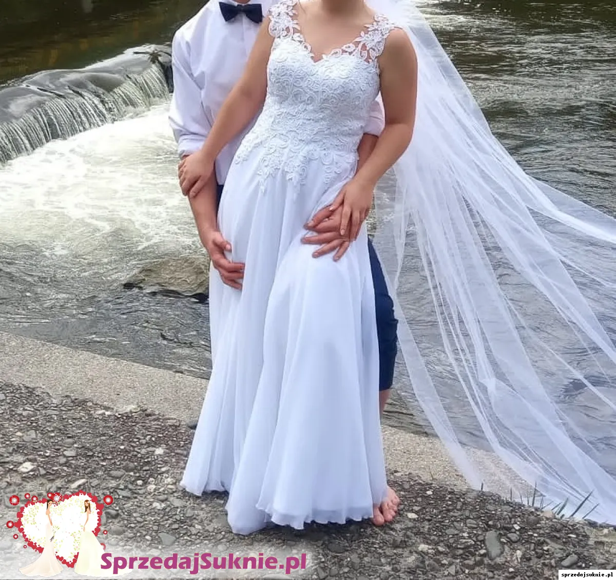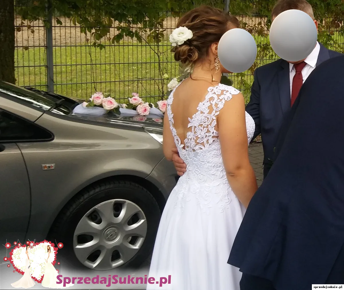 Stan sukni jest bardzo dobry, była założona na ślub i wesele oraz na sesję ślubną, Suknia jest wyprana.