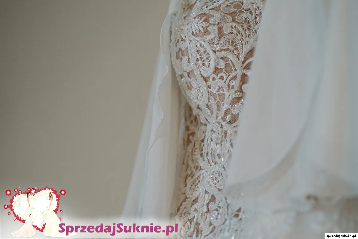 Na sprzedaż pięknie zdobiona suknia ślubna szyta na miarę: 173 cm wzrostu+5 cm obcas.