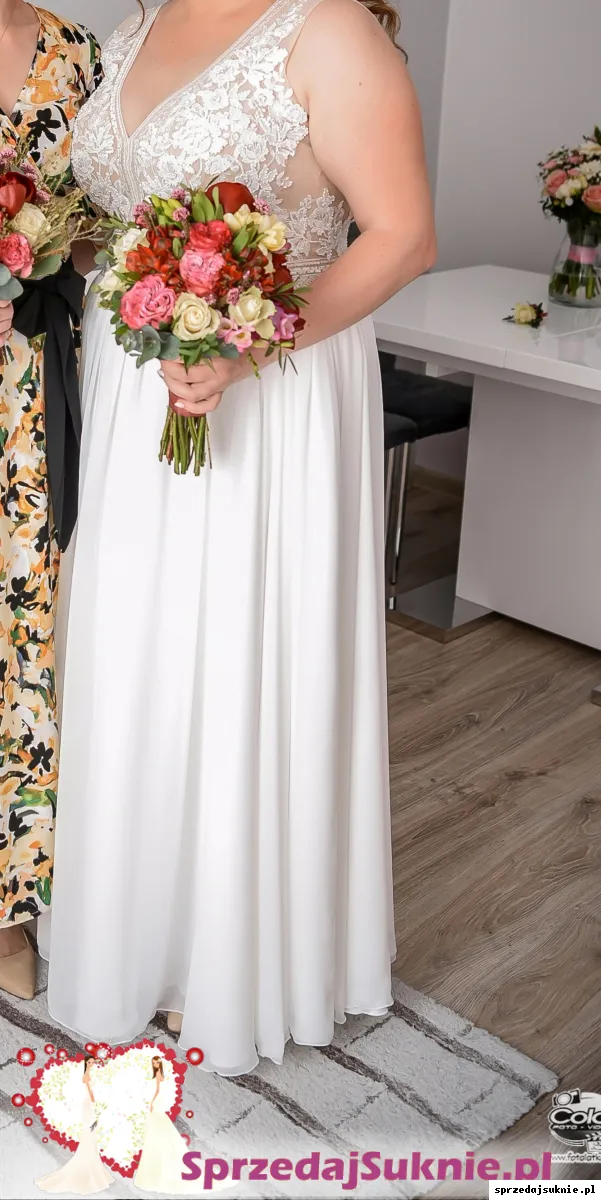 Witam, mam do sprzedania suknię ślubną. Jest prosta ale efektowna. Jedyny mankament to lekkie zaciągnięcie na tiulu ale do zminimalizowania. Kosz sukni w salonie to 3740,00 zł. Cena do negocjacji. Sprzedaję bo mam nadzieje, że jeszcze któraś z Was poczuje się wyjątkowo nawet w większym rozmiarze.