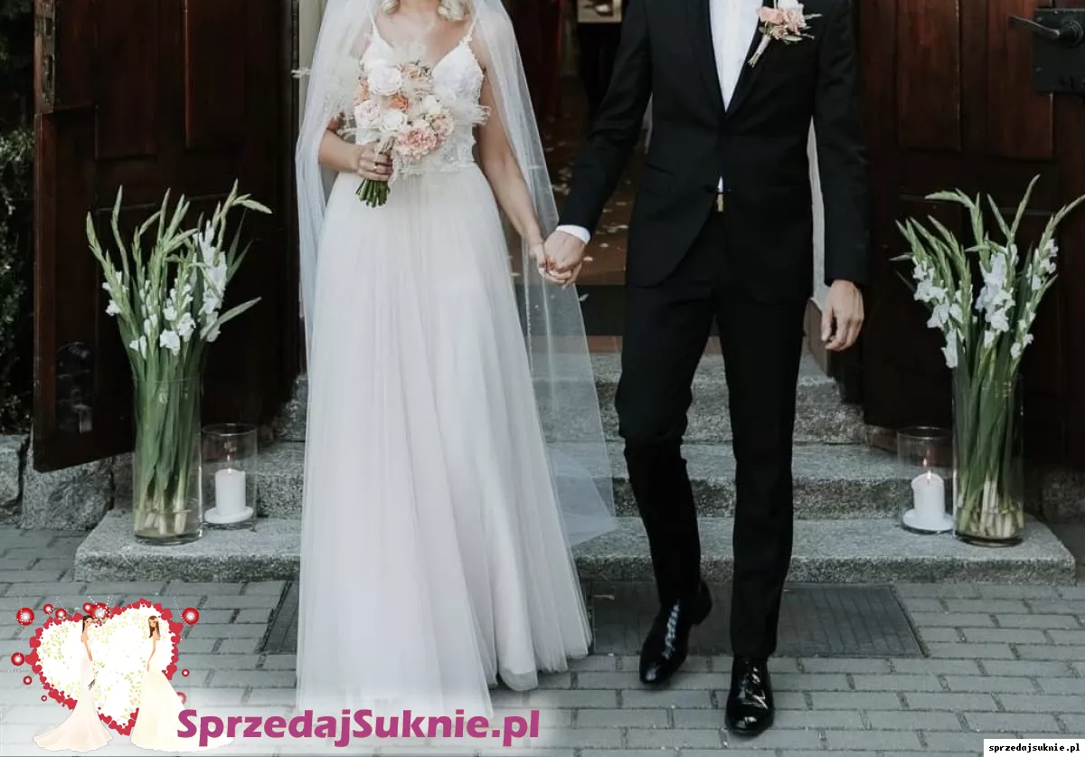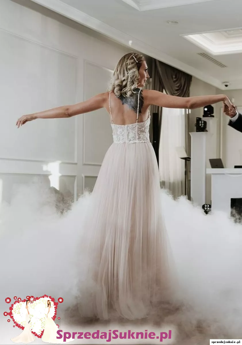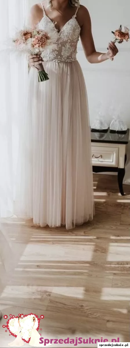 Posiadam na sprzedaż zwiewną suknię ślubną w rozmiarze S. Kolor kremowy.