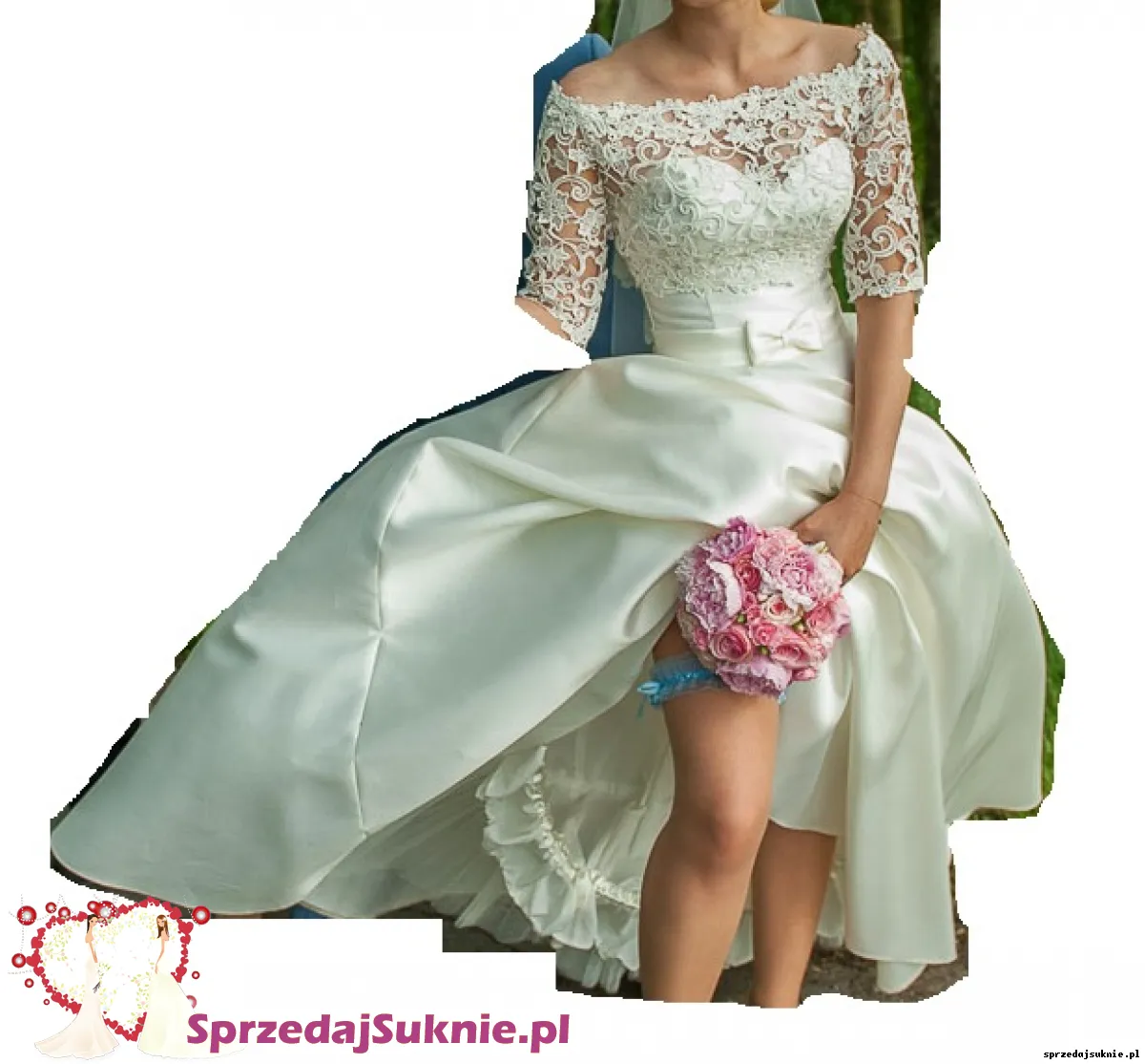 Suknia w literk臋 A z kieszeniami, koronkowa koszulka i welon w cenie.