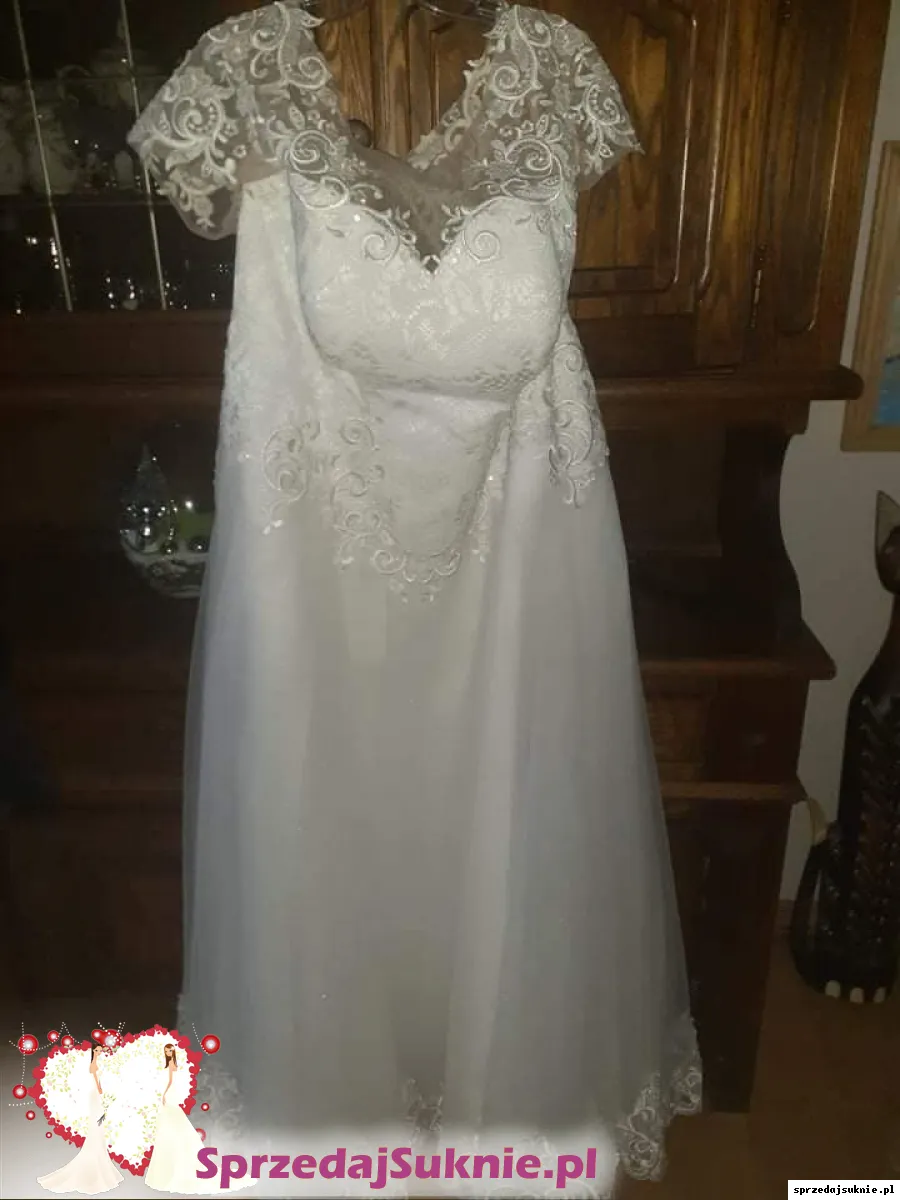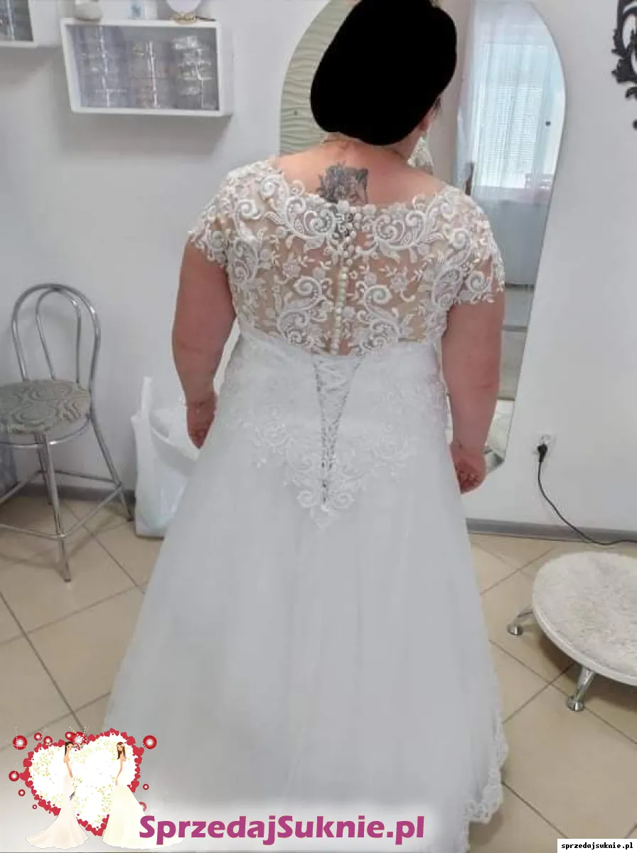 Witam ma na sprzedaż piękna suknie ślubne zakupiona w salonie Duber. Sukienka jest jednolita z gorsetem. Góra wykończona piękna koraka. Tył zapinany na guziki i wiązanie. Sukienka nie ma żadnych śladów użytkowania nie jest poplamiona ani nie mam żadnych dziur. Sukienka razem z kołem i pokrowcem. Wymiary biust 134. Obwód brzucha 140. Biodra 140. Sukienka była przerobiana w salonie. Cena z salonu 3200 zł