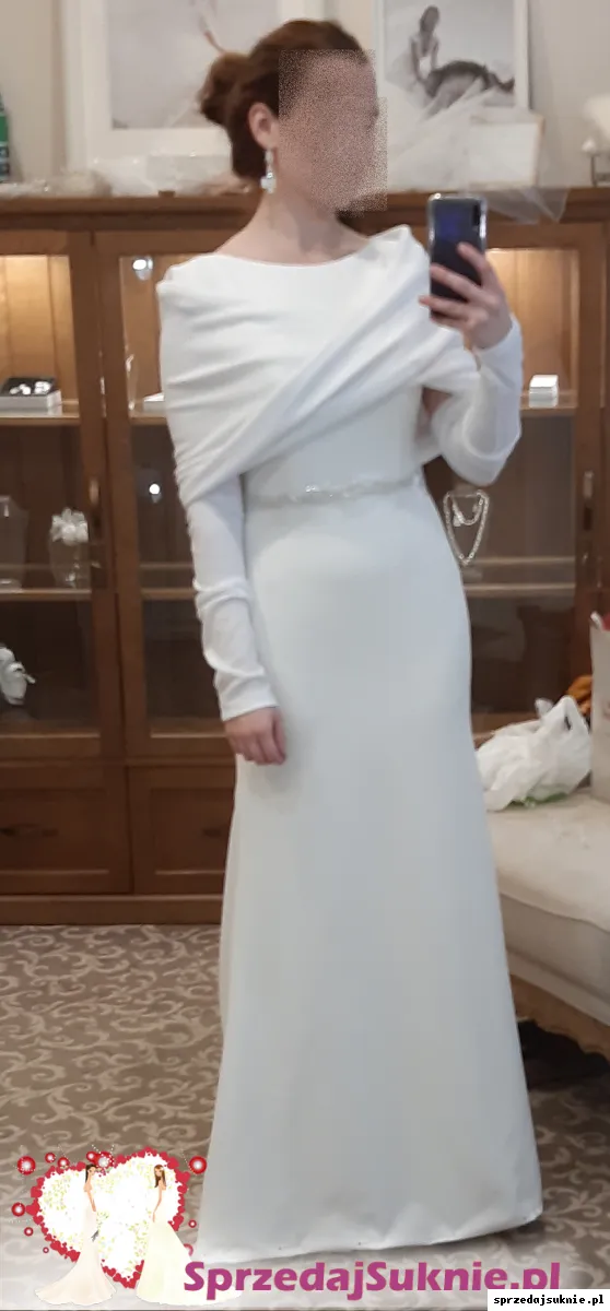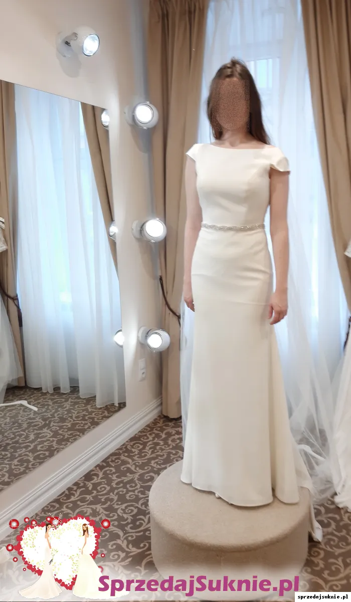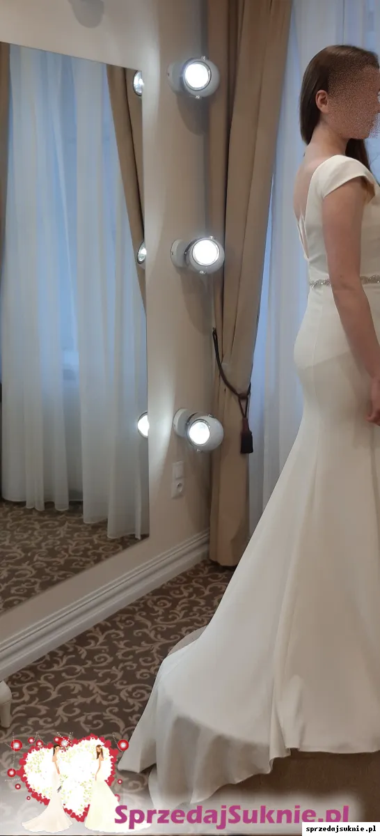 Sukienka z kolekcji z 2020r. Polecam ją wszystkim bo jest bardzo wygodna i absolutnie się nie mnie. Ma tren z tyłu który można spiąć na ukrytym guziczku. Sprawdzi się zarówno na samą ceremonię (tren) oraz na wesele ( spięty tren).