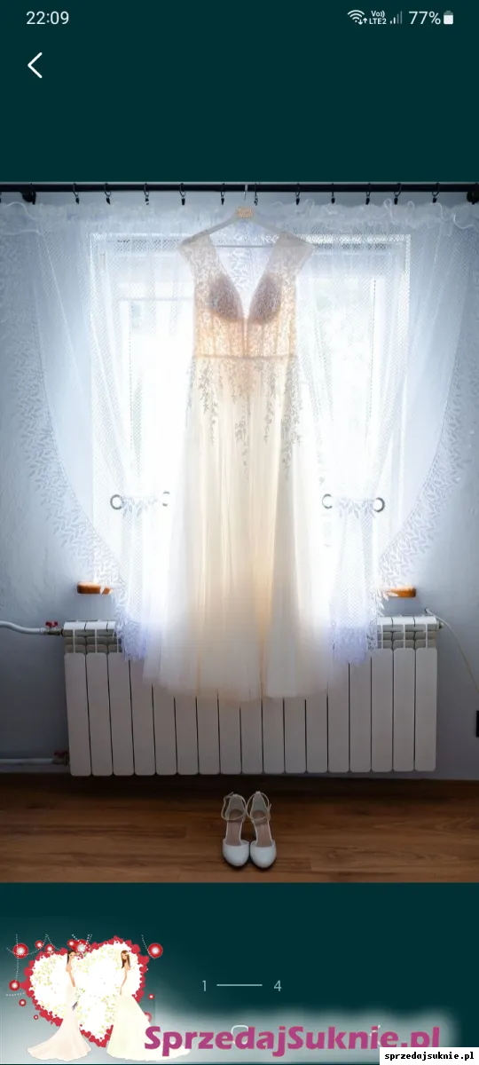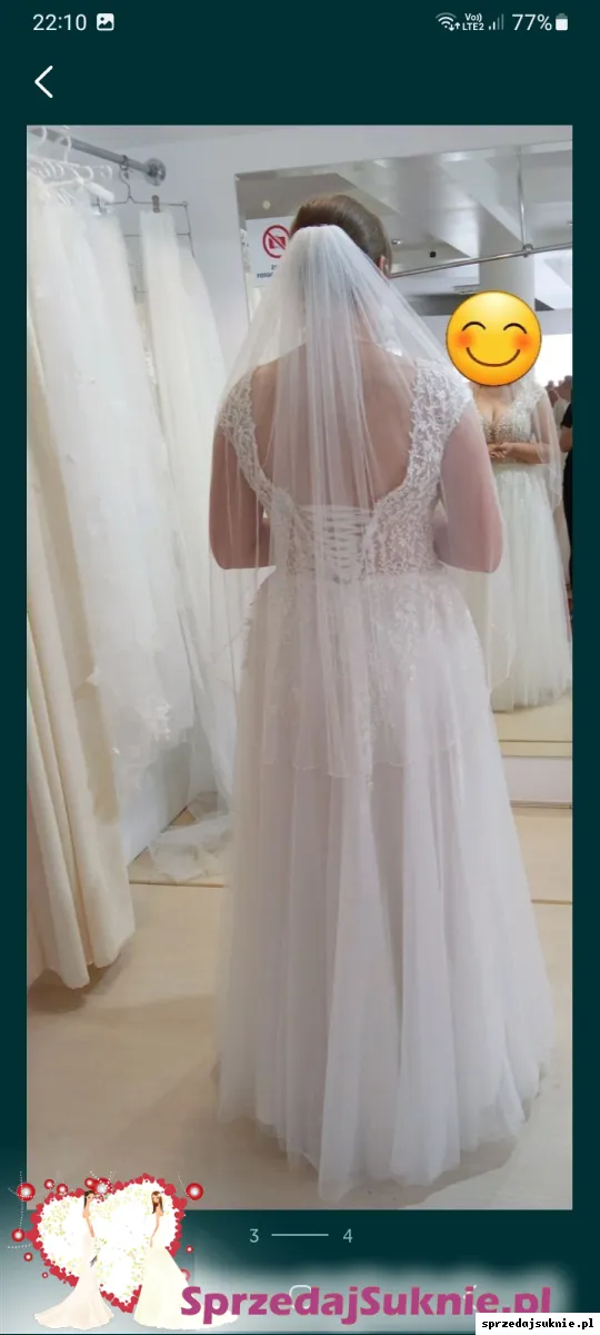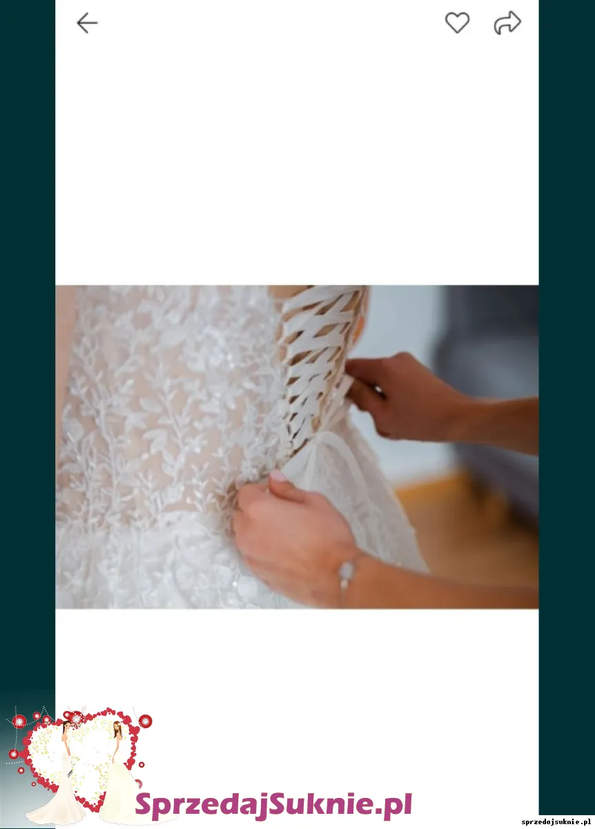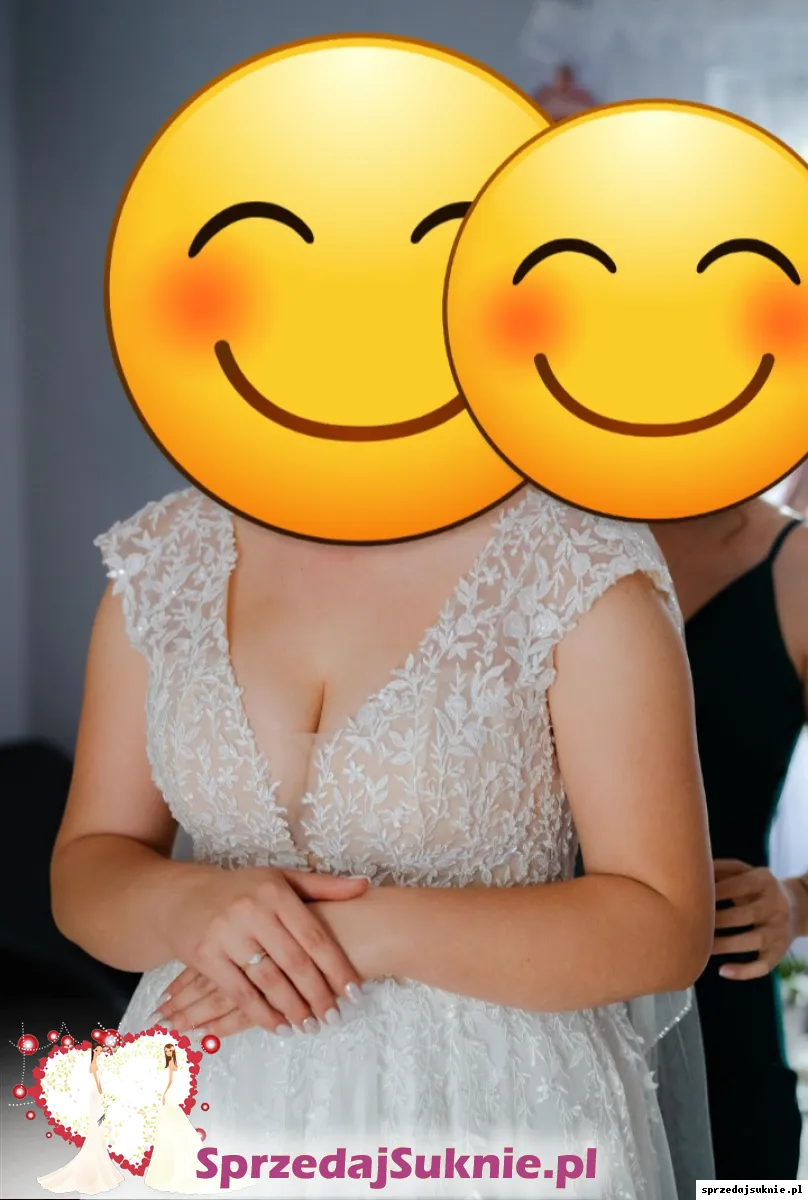 Witam sprzedam piękną suknie ślubną. Szyta na wzrost 176 cm + 5cm obcas. Gorset zdobiony kwiatuszkami i koralikami z wyciętym dekoltem w literkę V, pięknie podkreśla biust i przedewszystkim perfekcyjnie go podtrzymuje. Tył gorsetu wiązany na wstążkę. Dół sukni wykonany z tiulu, robi efekt wow podczas tańca. Serdecznie zapraszam do zakupu.