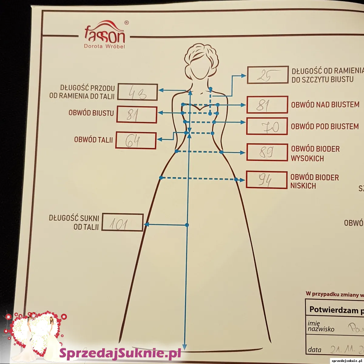 Szczegółowe informacje o sukni
