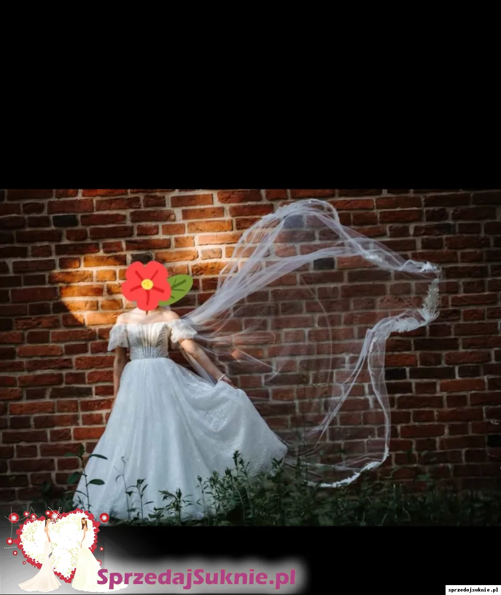 Koło jest oddzielnie i dołączam do sukni gratis. Welon dołączam do sukni gratis. Welon delikatnie błyszczacy wykończony na końcu tymi samymi ozdobami co ma suknia, więc wszystko spójnie do siebie pasuje.