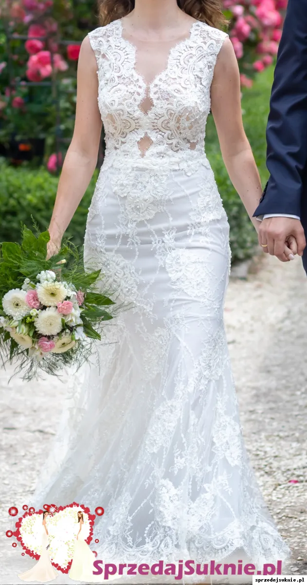 Sprzedam suknię ślubną projektu Julii Gastoł, KOLEKCJA 2020, model Elena. Rozmiar 34-36, na wzrost 164 cm + 7 cm obcas. Suknia jest w kolorze Ecru i wykonana z włoskiej koronki. Od pasa do kolan wszyta jest dodatkowa podszewka, dzięki której nie ma prześwitów. Suknia cudownie podkreśla kobiece kształty. Siateczka podszyta jest tylko na przednim dekolcie. Suknia była założona dwa razy– na ślub (bez wesela) i do sesji w plenerze. Suknia nie posiada żadnych zniszczeń. Jest już po profesjonalnym praniu, czysta i przygotowana dla nowej przyszłej panny młodej. Suknię można przymierzyć we Wrocławiu i okolicach. Zapraszam!