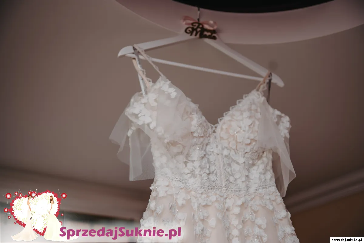 Sprzedam suknię ślubną na ramiączkach z falbankami