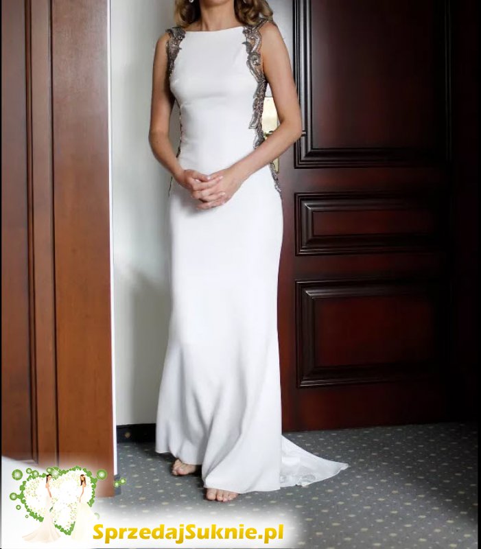 Sprzedam suknię ślubną projektanta Tarik Ediz zakupioną w salonie sukien ślubnych Madonna w Warszawie. Kupiona w 2018 roku za kwotę 4500 PLN. Suknia jest w dobrym stanie. Suknie założyłam tylko raz podczas ślubu, nie odbywały się w niej żadne plenerowe sesje zdjęciowe. Została poddana profesjonalnemu odświeżeniu w salonie Madonna w 2019 roku. Posiada tren podpinany na guzik. Krój dopasowany do ciała, podkreśla figurę i jest bardzo lekka. Mój wzrost 172 cm. Obwód talii: 66 cm Zdjęcia przedstawiają oferowaną suknię w rozmiarze ok. 36 (dopasowana po poprawkach w salonie Madonna z rozmiaru 38) Cena zakupu to 500 PLN. Suknię można odebrać w Warszawie, dzielnica Wola.