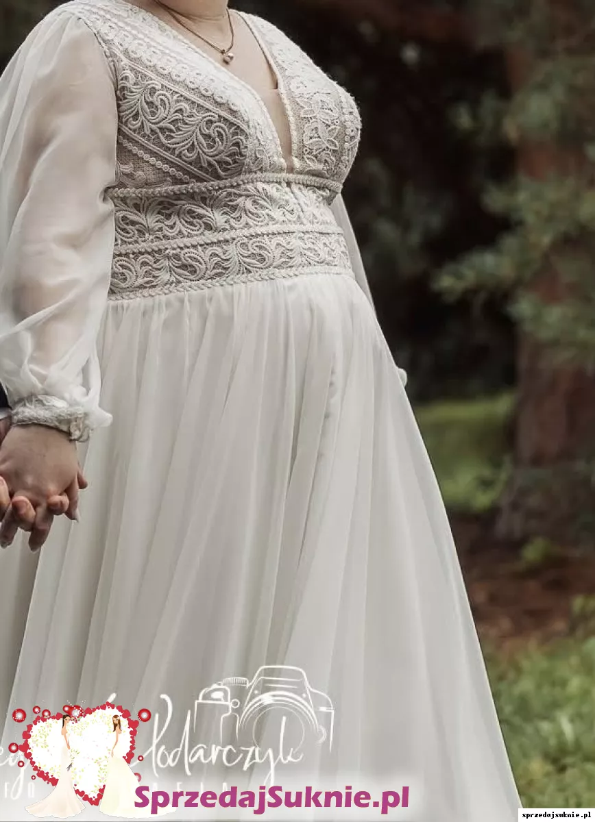 Sprzedam suknie raz ubrana po pralni chemicznej na kobietę 160 plus size biust około B-C cena do uzgodnienia ponieważ jest lekko uszkodzona w rękawie (zahaczone lekko )
