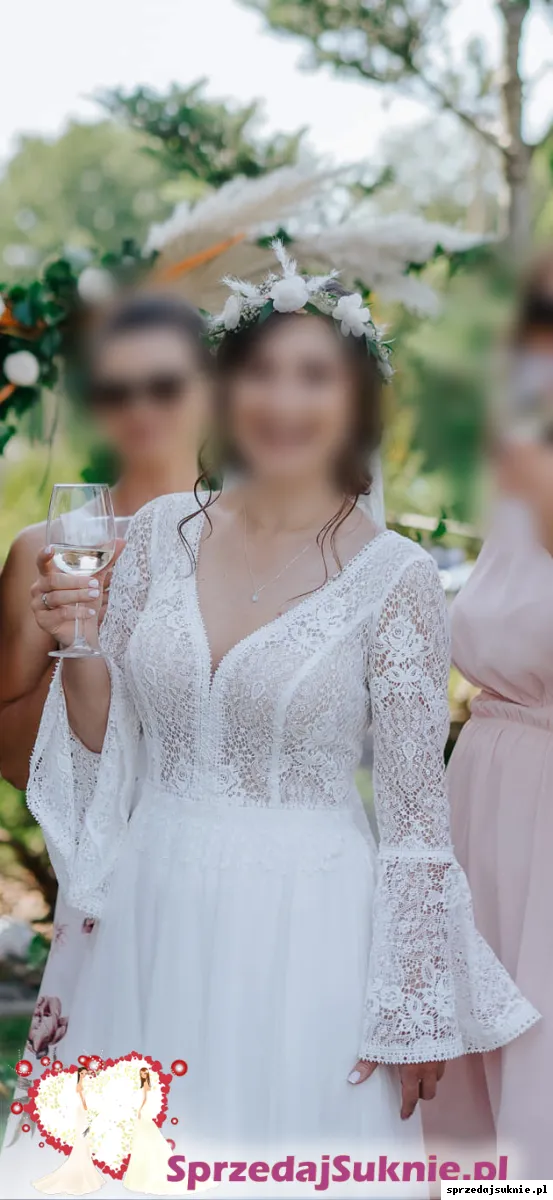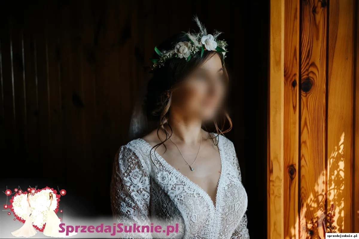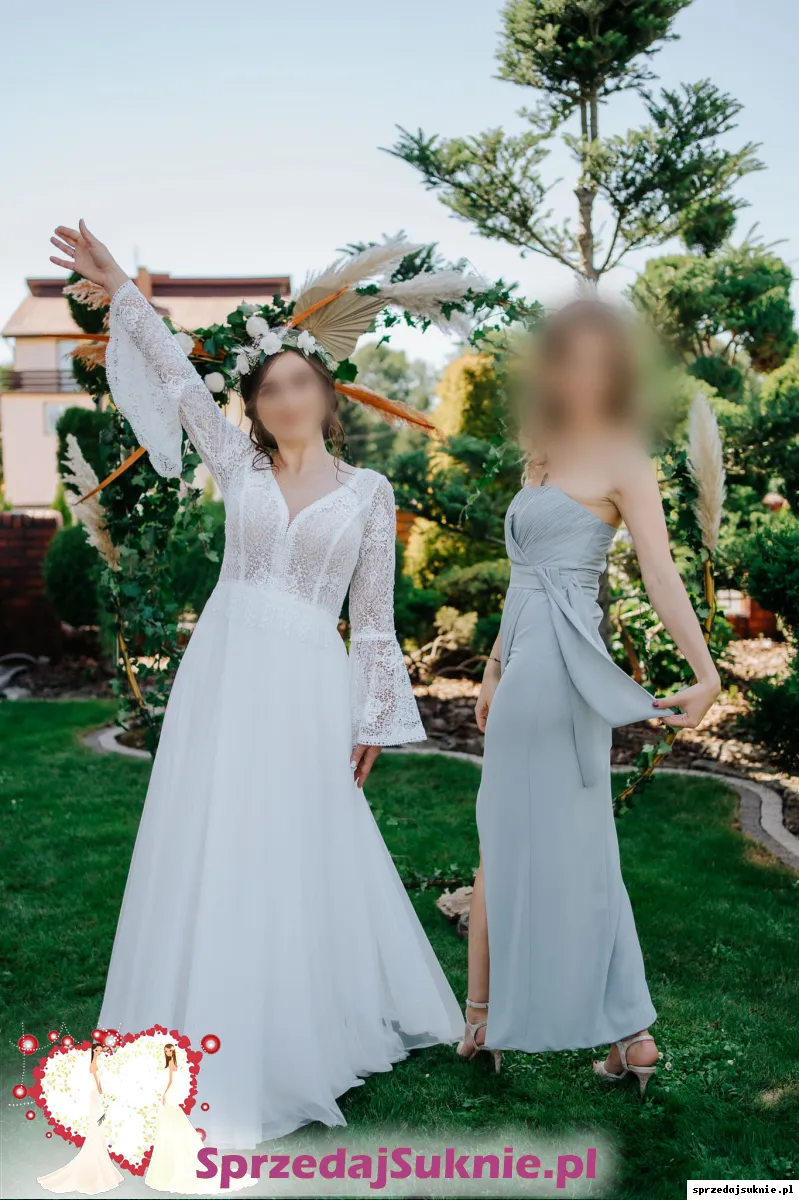 Sprzedam sukienkę ślubną, w stylu Boho. Wartość nowej sukienki z welonem z salonu to 3900 zł. Była założona tylko raz. Bardzo wygodna, ma mięciutką koronkę :)