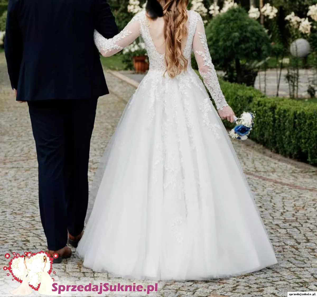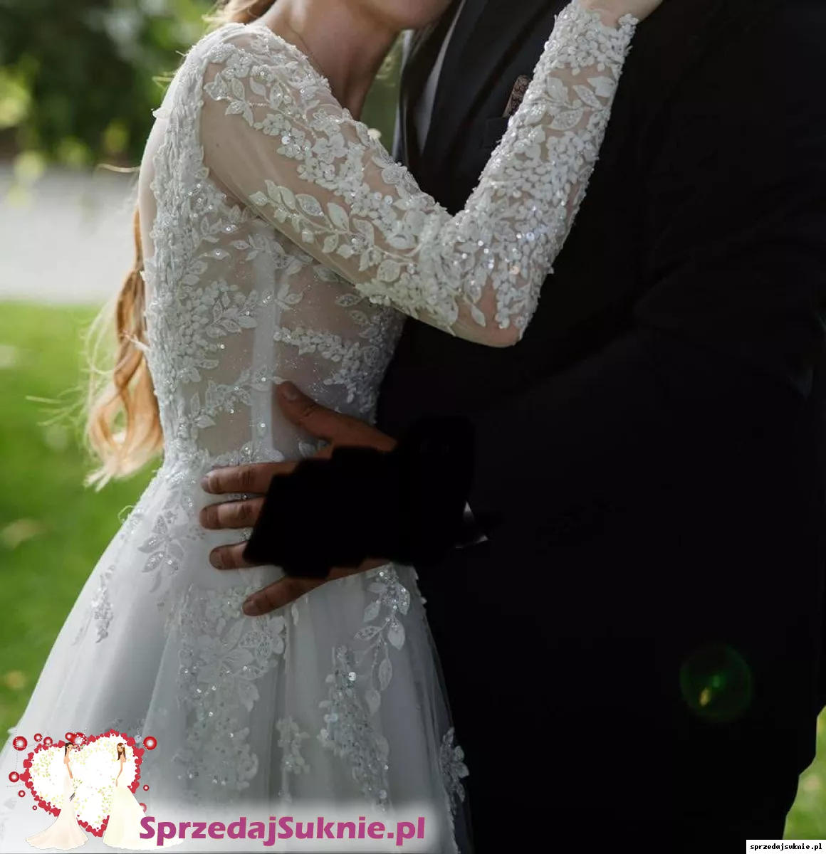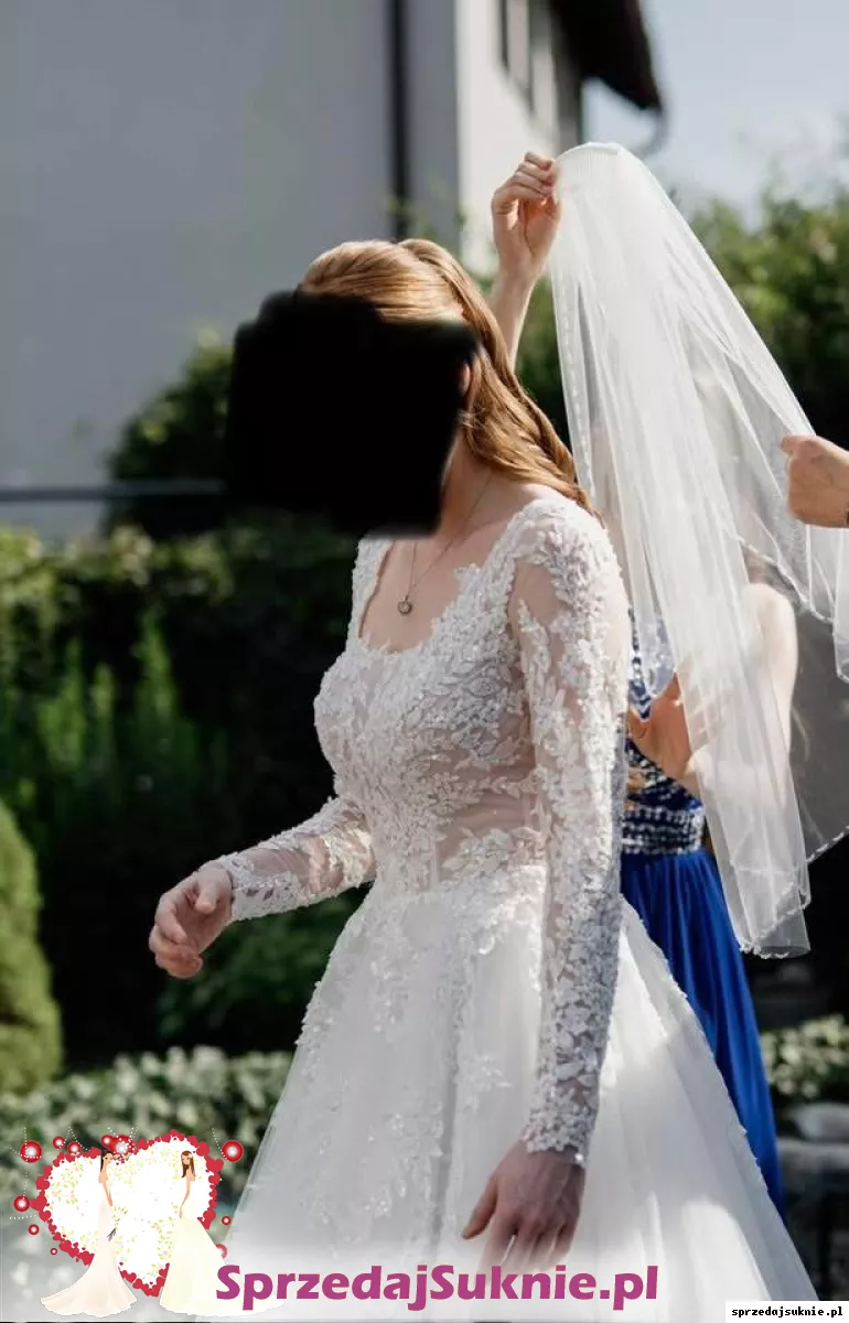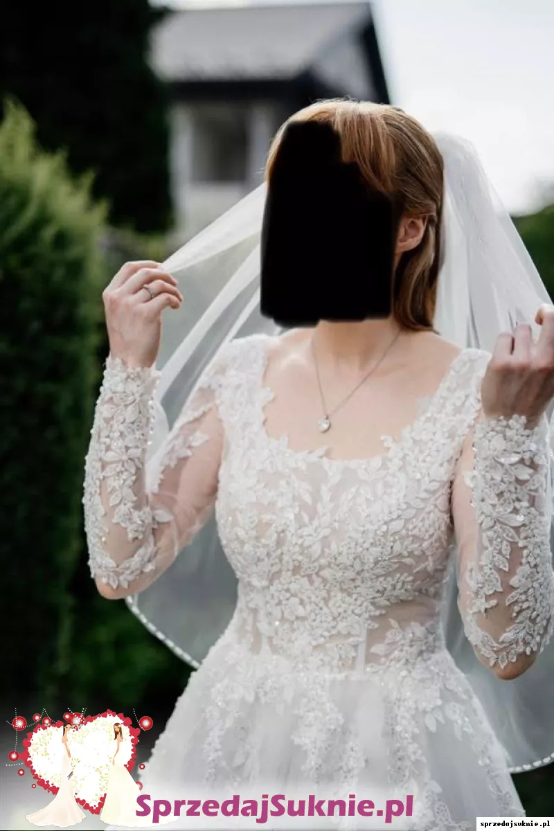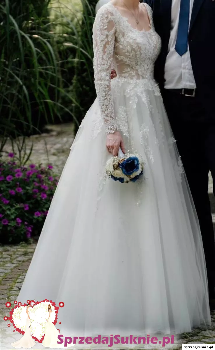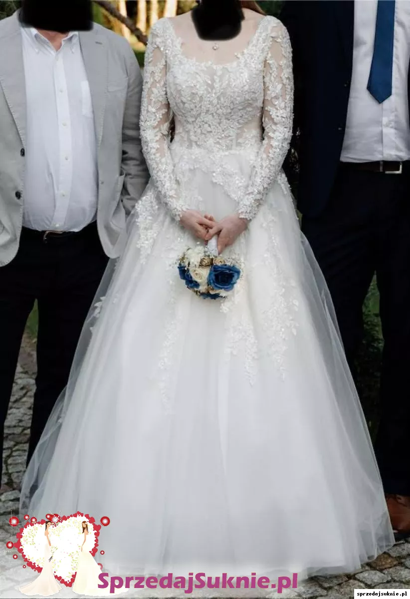Sprzedam suknie ślubną A-line na długi rękaw. Wzrost 175cm, obcas 5cm.
