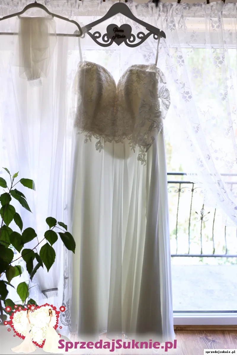 Suknia muślinowa na gorsecie modelującym, to nie jest zwykły gorset. Warta swojej ceny, robi mega figurę. Mega pas. Dla kobiety plus size idealna.