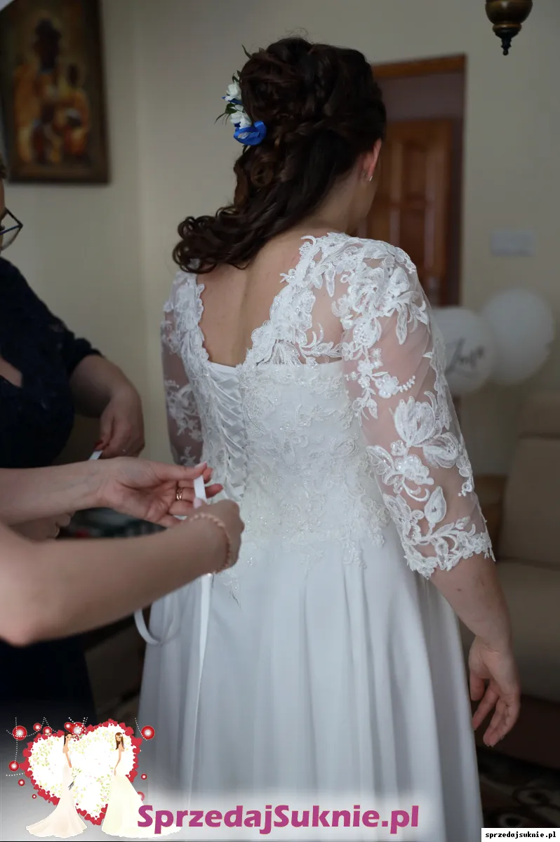 Rękaw 3/4 z koronki. Dość szeroki. Nie krępuje ruchów.