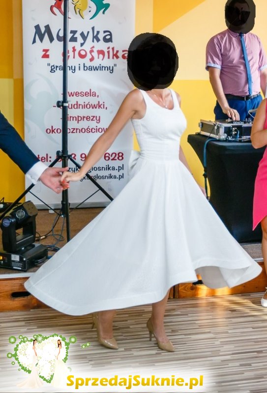 Szyta na wzrost 165cm + 9cm obcas, rozmiar 34-36. Pięknie się układa w tańcu, cudownie wygląda na zdjęciach. Jest lekka, jednowarstwowa - idealna na lato.