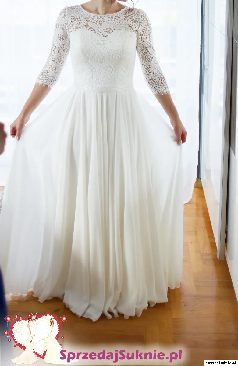 Sprzedam suknie ślubną w kolorze śmietankowym. Rozmiar 36. Suknia wyprana chemicznie. Suknia na wzrost 160 cm +8 cm obcas. Do sukni 3 m welon gratis. POLECAM Suknia bardzo wygodna.