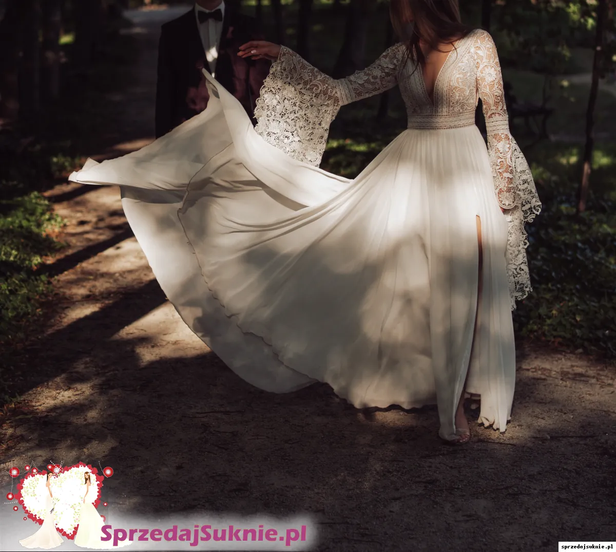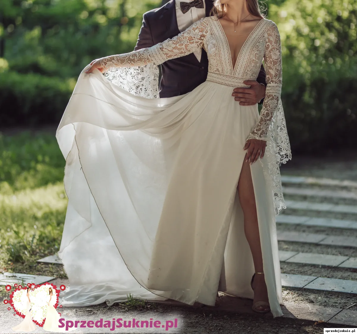 Przepi臋kna suknia 艣lubna z rozporkiem i trenem