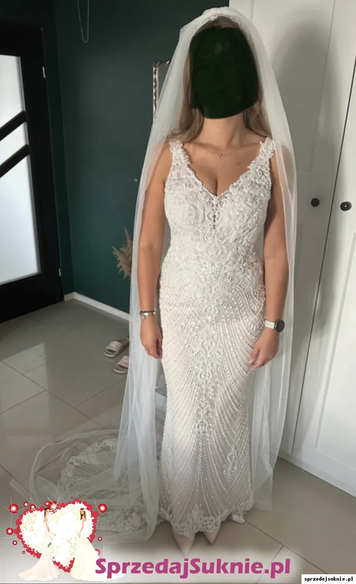 Sprzedam przepiękna suknie ślubną wyszywana kamieniami.