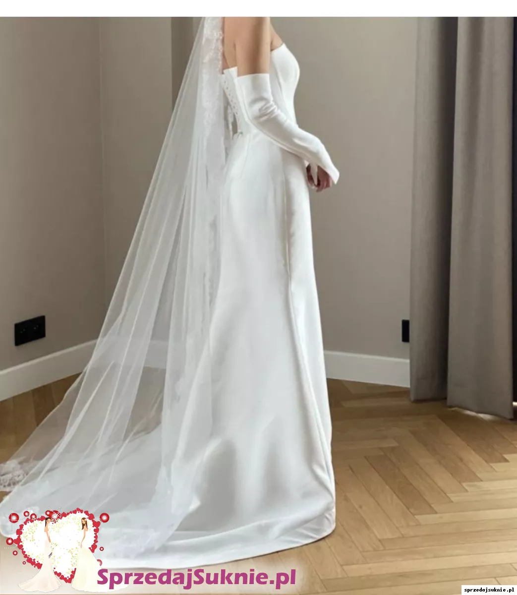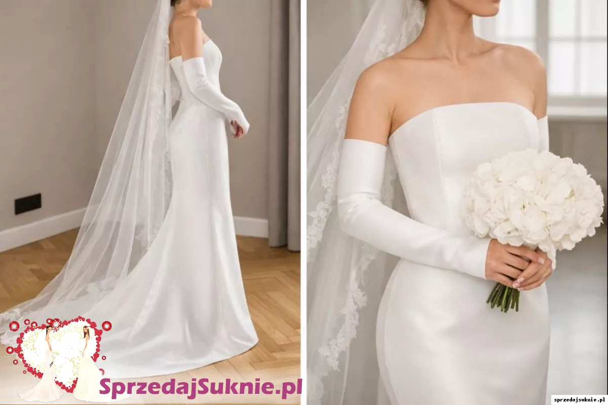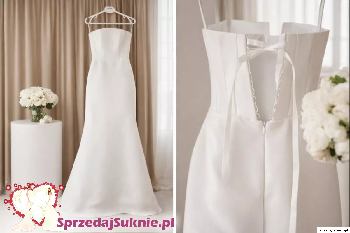 Sprzedam piękną, minimalistyczną suknię ślubną w kolorze klasycznej bieli. Suknia o prostym, ponadczasowym kroju – idealna dla panny młodej, która ceni elegancję, nowoczesność i subtelny luksus.