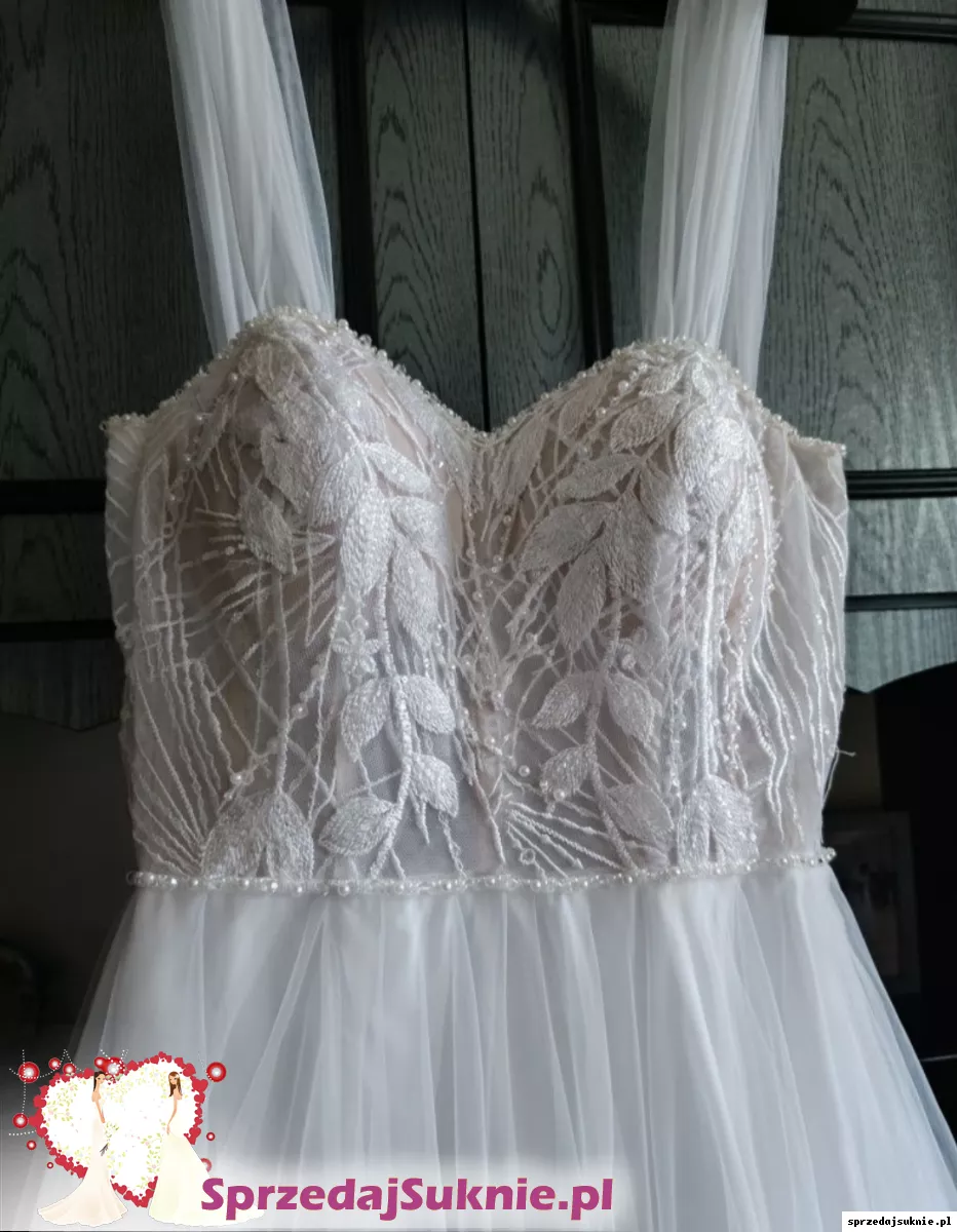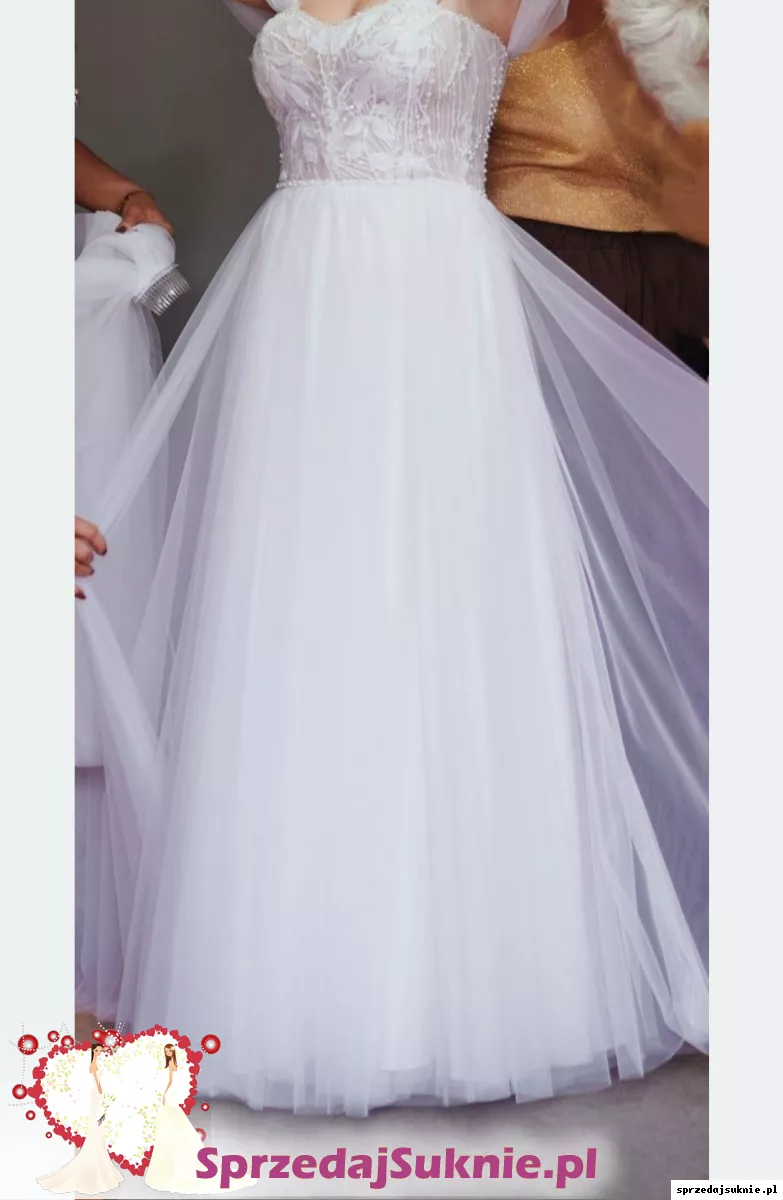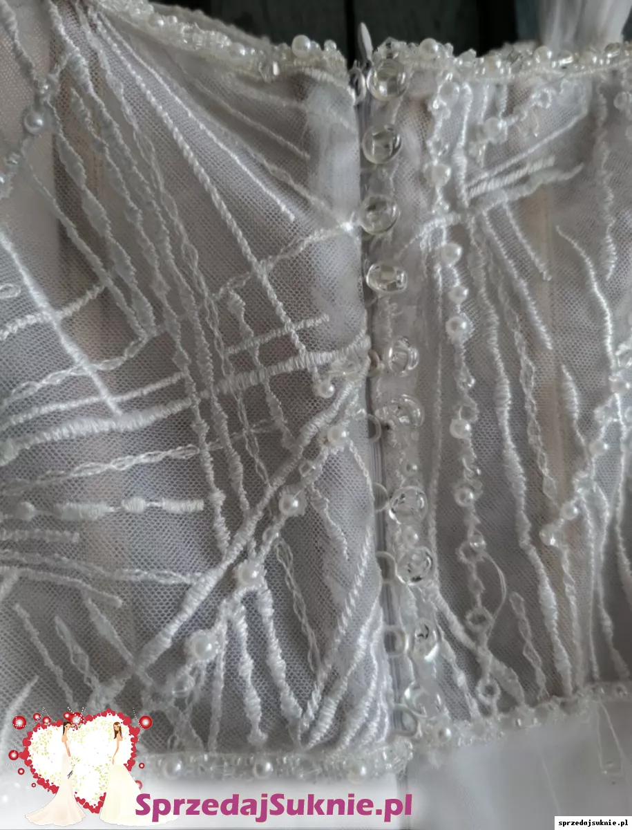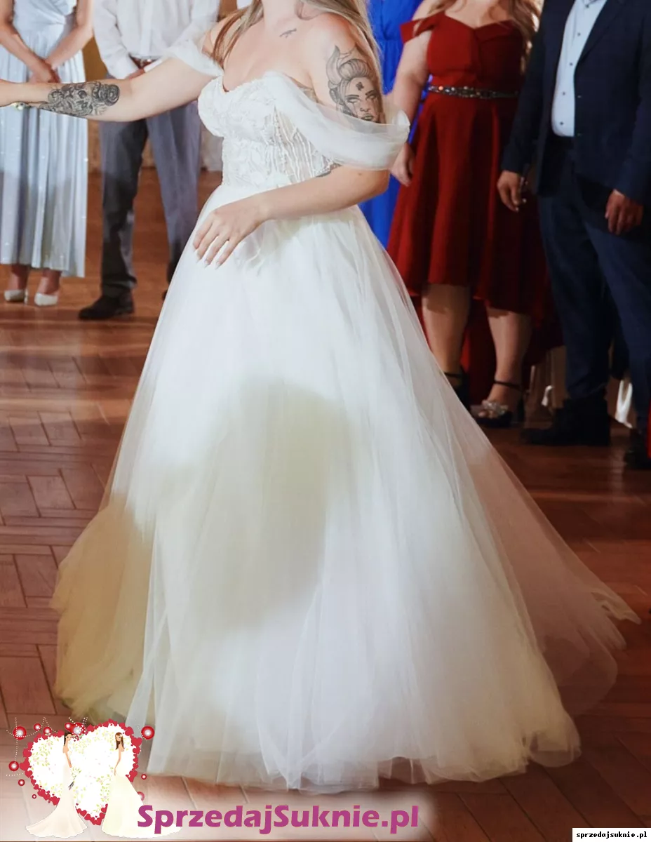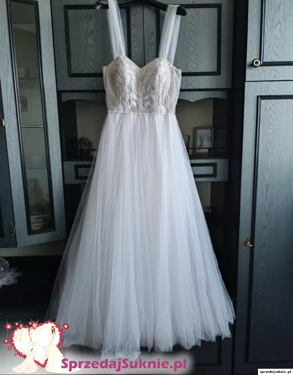 Suknia była szyta na miarę, lecz jest to mniej więcej rozmiar 38.
