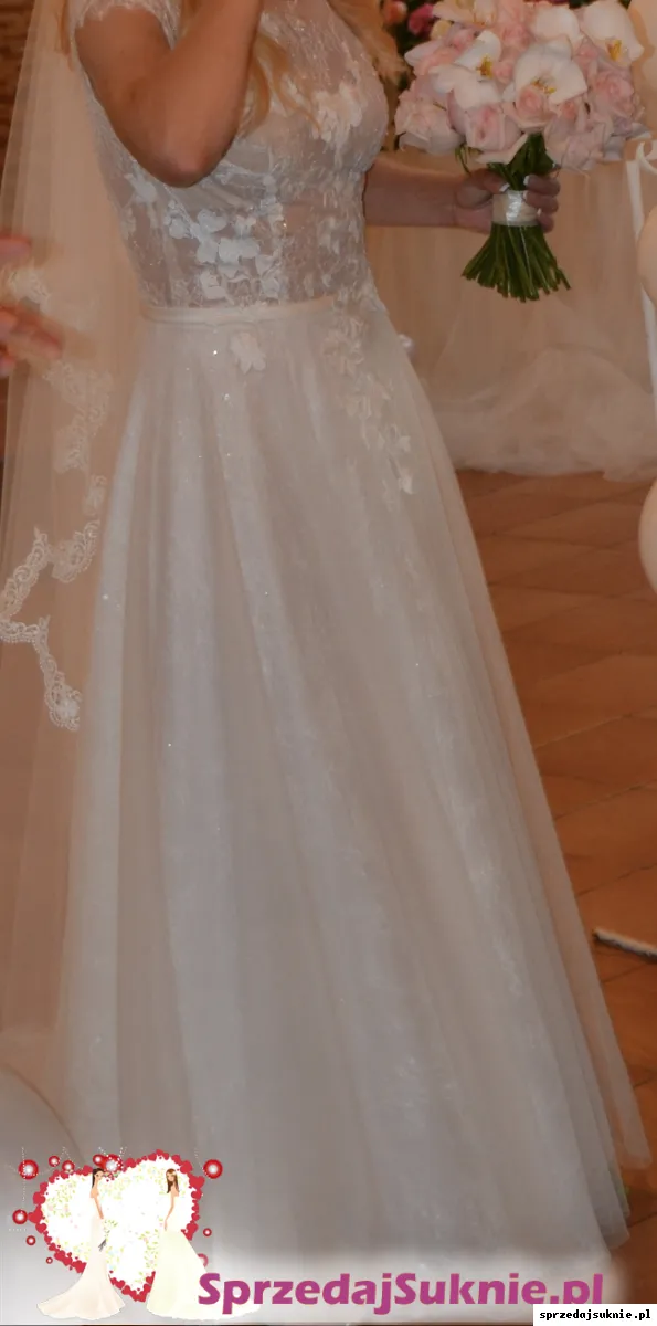 Suknia była noszona tylko raz i jest po profesjonalnym czyszczeniu. Kolor: ivory.
