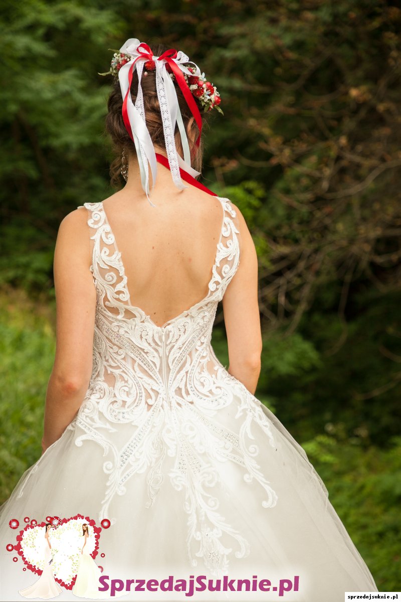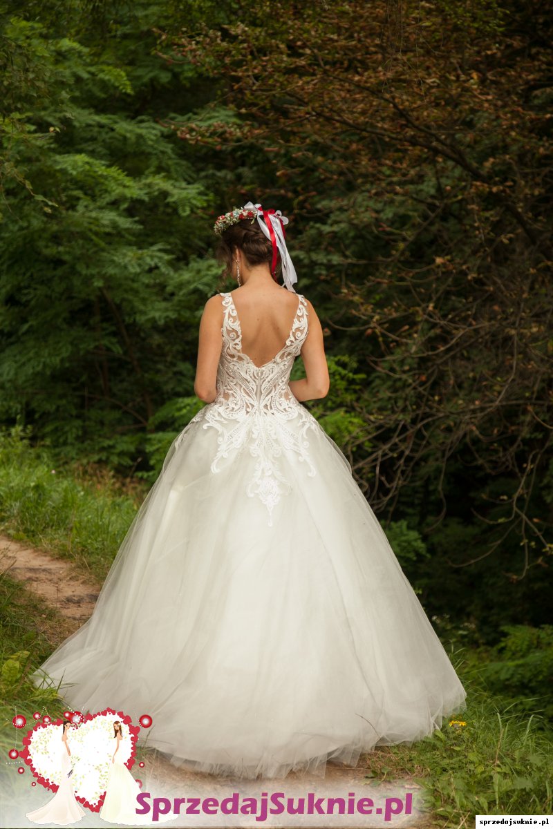 Suknia jest z kołem, bardzo wygodna, pięknie się układa w tańcu i bez wątpienia wzbudza zachwyt gości. Suknia zakupiona w Salonie za 7 tyś. Każdy z gości przychodził i podkreślał jak cudnie wyglądam.
