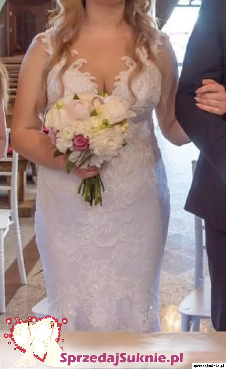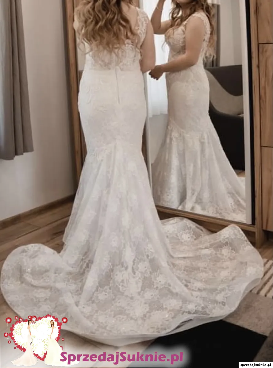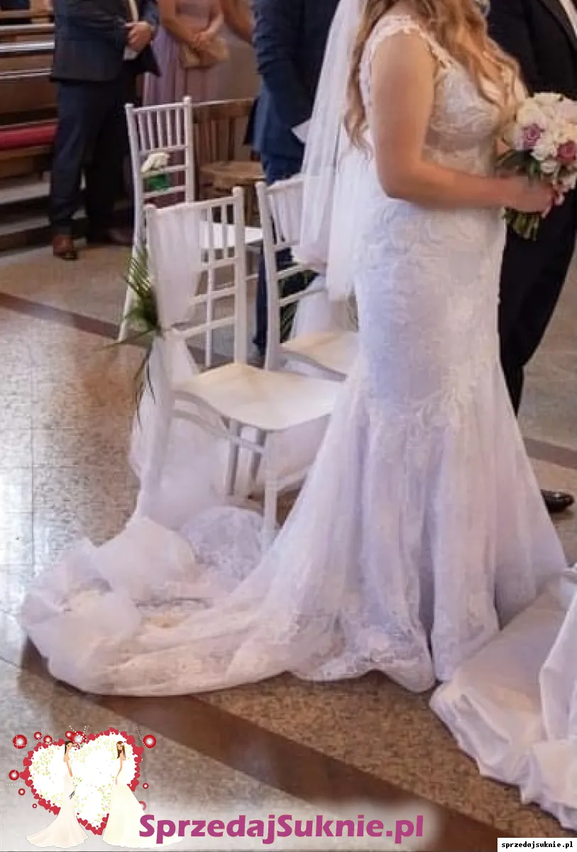 Suknia ślubna bogato zdobiona syrenka rybka biała wyjątkowa błyszcząca