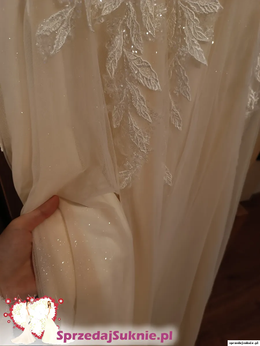 Osobiście mogę powiedzieć, że była bardzo wygodna, pięknie się prezentowała przy tańcu i każdym ruchu. Byłam z niej bardzo zadowolona. Szyta we Francji i sprowadzana do salonu sukien ślubnych CLOO w Katowicach. Kolekcja z roku 2022.