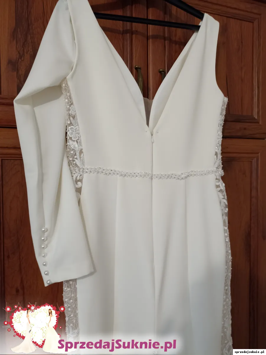 Suknia ślubna uszyta w 2022 roku w salonie sukien ślubnych Diana Atelier w Rzeszowie. Szyta na wzrost 165 cm+9,5cm obcas sukni. Suknia posiada odpinane rękawki i podpinany tren. Użyta tylko raz przeze mnie i następnie wyprana w pralni. Cena do negocjacji.