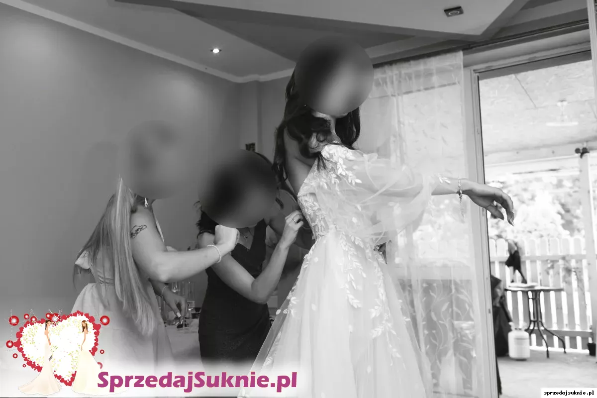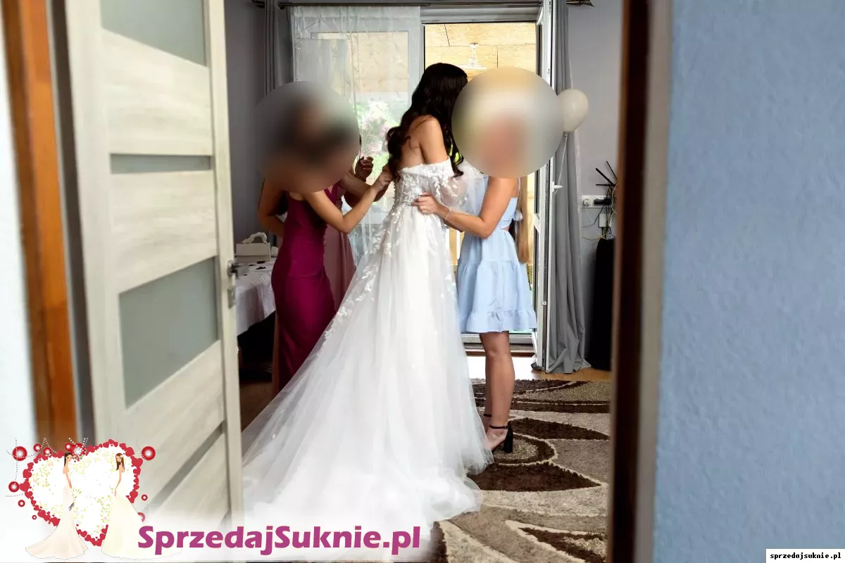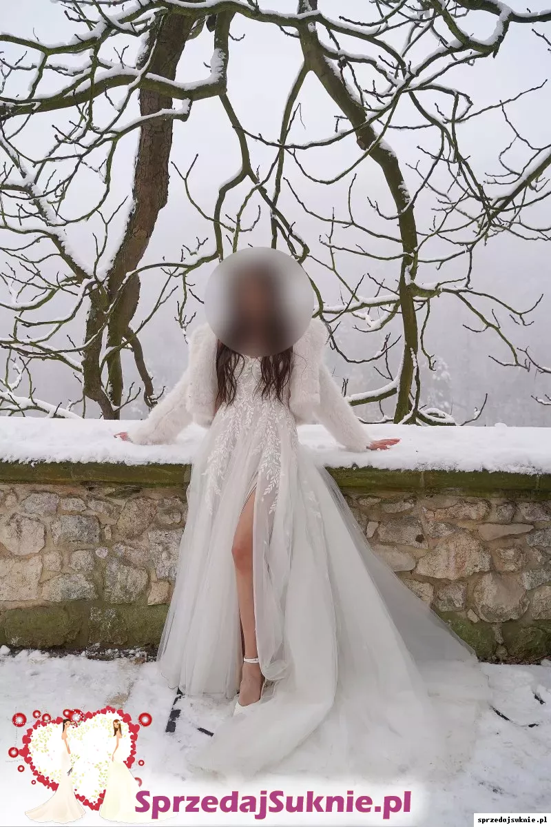 Witam, na sprzedaż mam suknie ślubną zakupioną w salonie sukien ślubnych Miss Cherrie w Tarnowie, do sukni są rękawki oraz ramiączka, gorę ma gorsetową dlatego łatwo tez ją nosić bez dodatków. Ma długi tren podpinany od spodu. Tren jest juz podpiety także nie trzeba go odpinać i mozna ją nosić bez trenu. Na moim profilu są jeszcze 2 zdjęcia sukni :) Za suknie łącznie zaplacilam 7200.