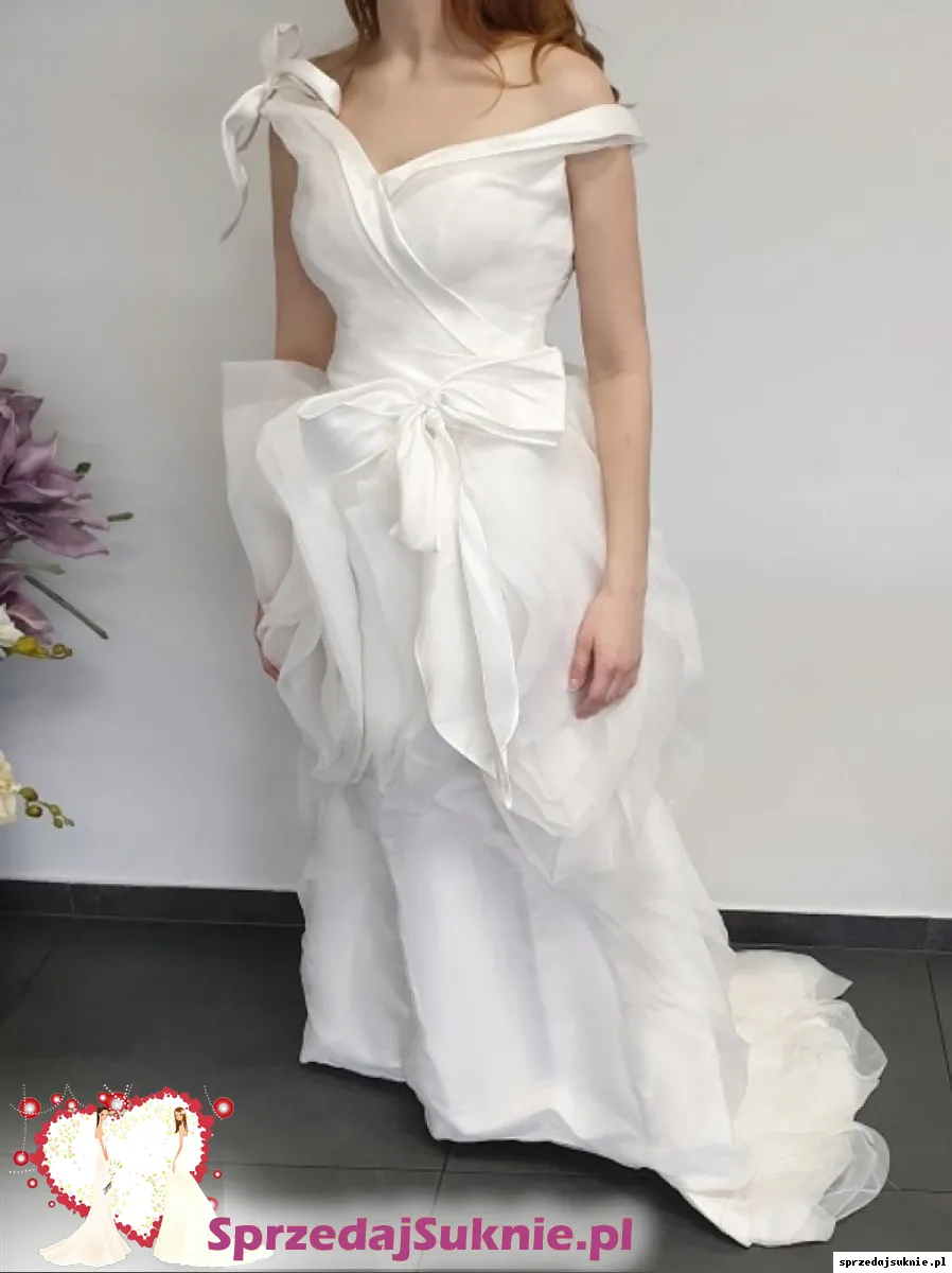 Piękna suknia ślubna uszyta z organtyny na wzór sukien Very Wang.