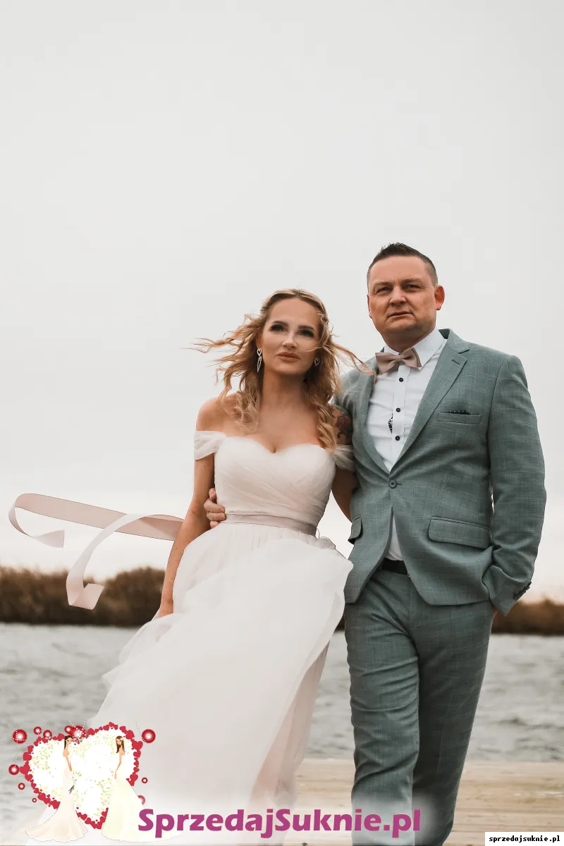 Sprzedam suknię ślubną typu hiszpanka, rozmiar 36/38, kolor pudrowy róż, Suknia ma wszyty gorset w środku, węc jest możiwość regulacji w klatce piersiowej i w talii, zapinana na zamek, a w pasie przepasana piękną romantyczną wstążką. Suknia na długość do wzrostu ok.163 cm. Suknia została zakupiona w firmowym salonie Madonna w Szczecinie i kosztowała ponad 3000zł. Ze względu na czas pandemii była założona tylko na ślub cywilny na 15 min. i do sesji ślubnej, nie była na przyjęciu weselnym, więc nie jest pozaciągana ani uszkodzona. Suknia ma bardzo delikatny i romantyczny styl, wygląda piękne. Do sukni dołączam oryginalny wieszak i pokrowiec.