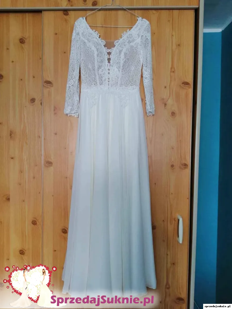 Na sprzedaż mam piękną suknię ślubną, zakupioną w salonie ,,Bianka" Pani Kamili Froelke w Starogardzie Gdańskim.