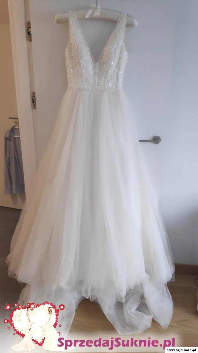 Suknia jest nowa, nie robione żadne przeróbki krawieckie. Nie była używana. Brak uszkodzeń.