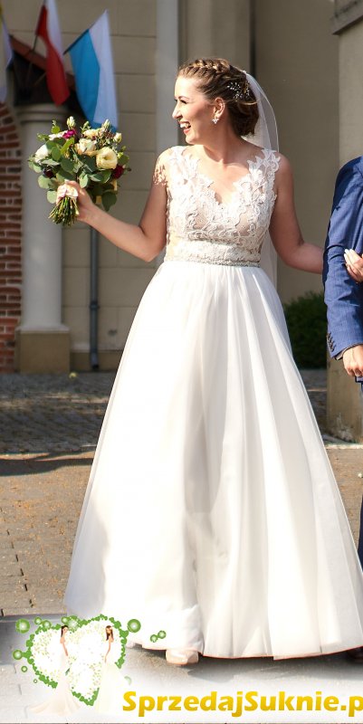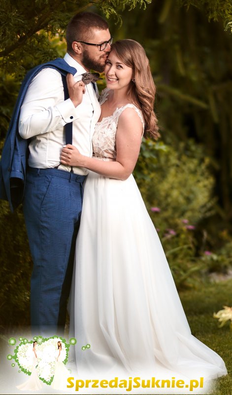 Hej, Sprzedam suknię z poznańskiego salonu Julia Rosa. Link do modelu poniżej: https://www.juliarosa.pl/suknie-slubne/kolekcja-2019/lookbook-2019/#1070 Moja suknia została uszyta na rozmiar 38, wzrost 171cm. Dół na moje życzenie został uszyty z tiulu nie takiego kremowego jak na zdjęciu na stronie internetowej tylko śmietankowego. Suknię na pewno łatwo przerobić na mniejszą w przypadku nieco bardziej filigranowych panien młodych niż ja ;) Oczywiście dołączam moje zdjęcia. Suknia kosztowała 4200, dlatego wystawiam ją za 3000 ponieważ jest używana ale nie jest w ogóle zniszczona. To polska, bardzo profesjonalna marka. Dobrej jakości materiał pięknie się układa na ciele + na zdjęciach :) naprawdę polecam tę kieckę :)