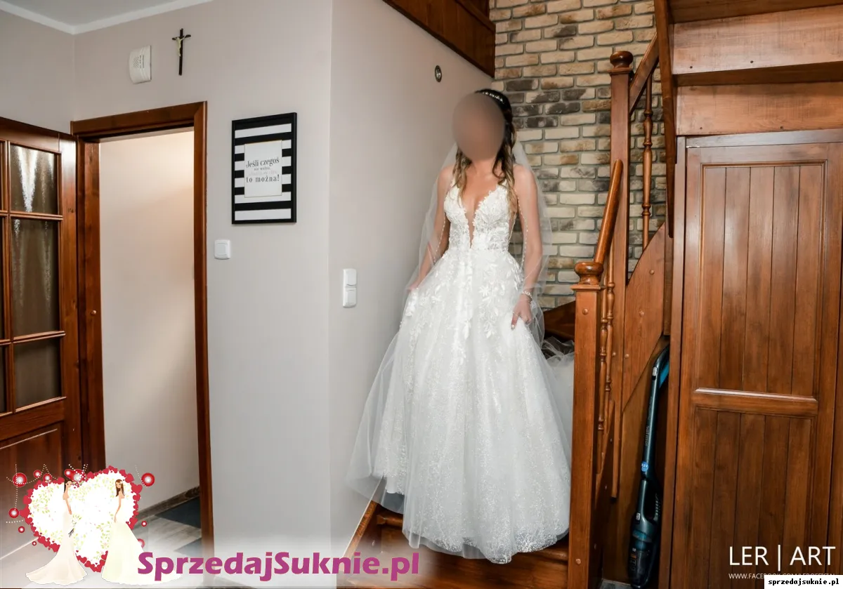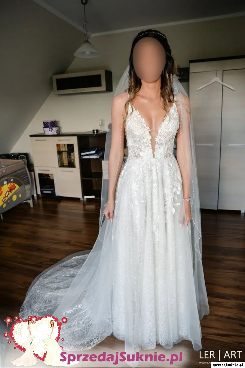 Witam, przedmiotem sprzedaży jest suknia ślubna Liretta LIBERICA rozm. 36-38 na wzrost 180cm na butach płaskich. Suknia była używana 2 razy. Podczas uroczystości ślubnej oraz sesji zdjęciowej. Suknia jest wyprana i bez uszkodzeń. Do sukni mogę dorzucić welon obszyty delikatnymi zdobieniami i szlafrok satynowy z napisem "Bride". Zapraszam do kontaktu