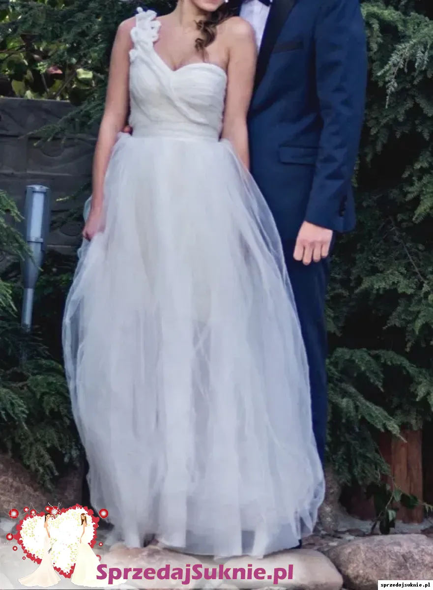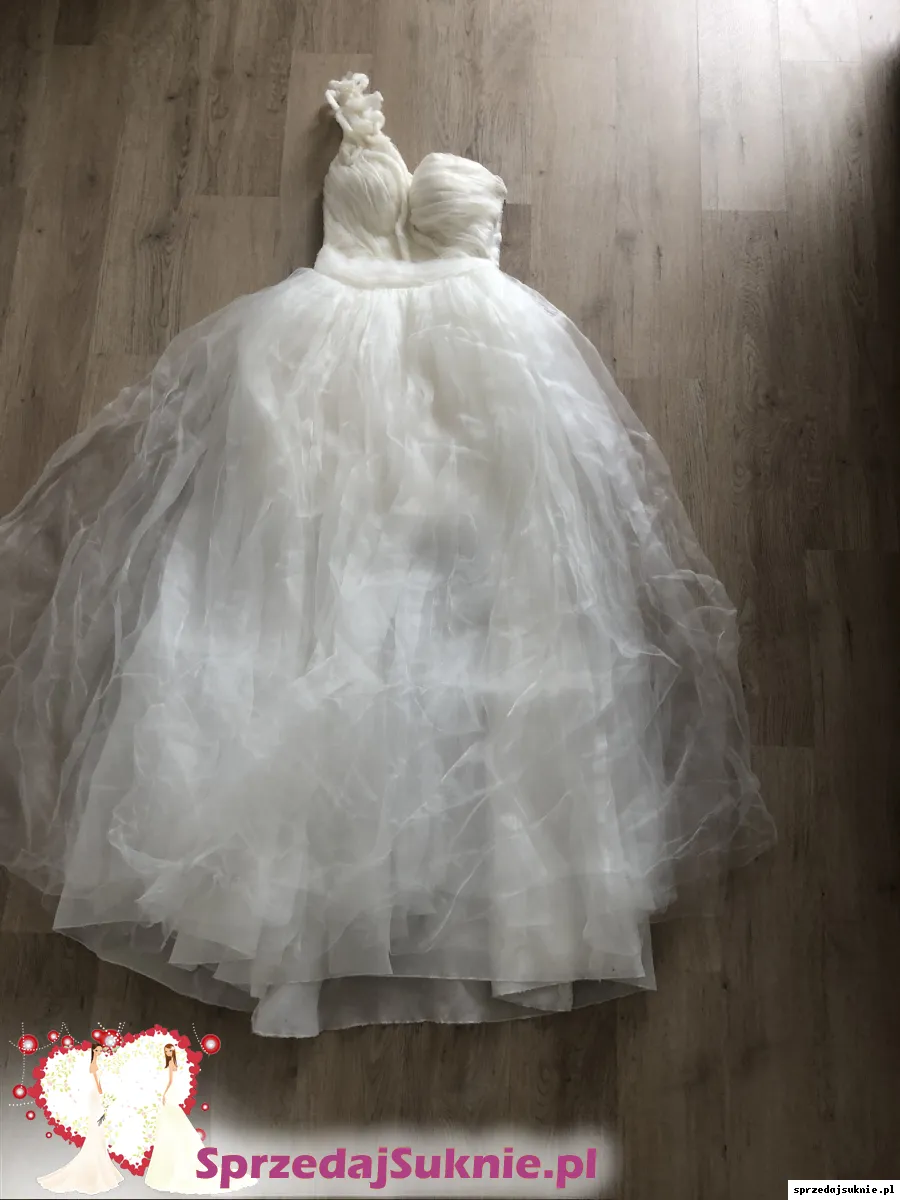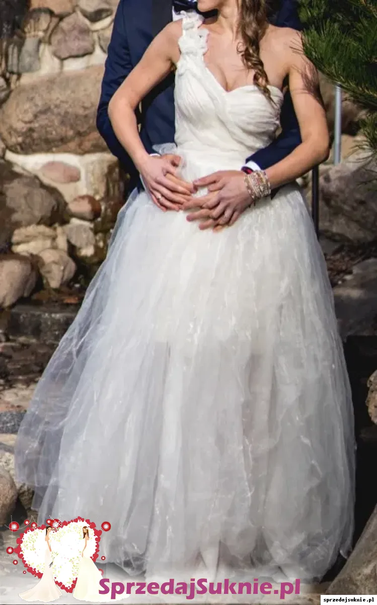 mam na sprzedaż suknię ślubną na jedno ramię w rozm. 36/34