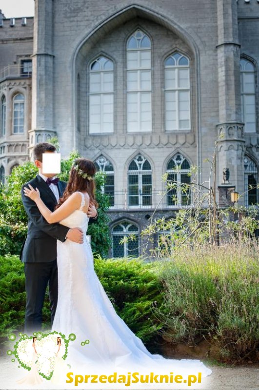 Sprzedam piękną, uszytą na indywidualne zamówienie suknię ślubną w rozmiarze 36-38 na wzrost 156cm + ok 10 cm obcas.
