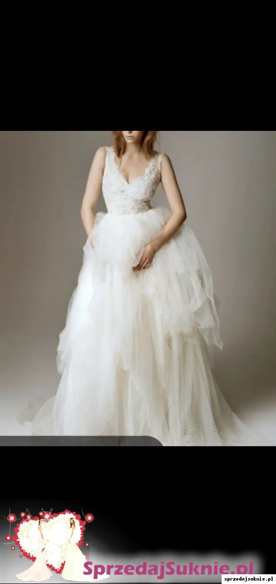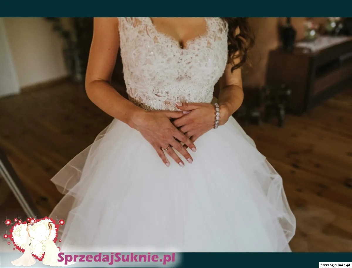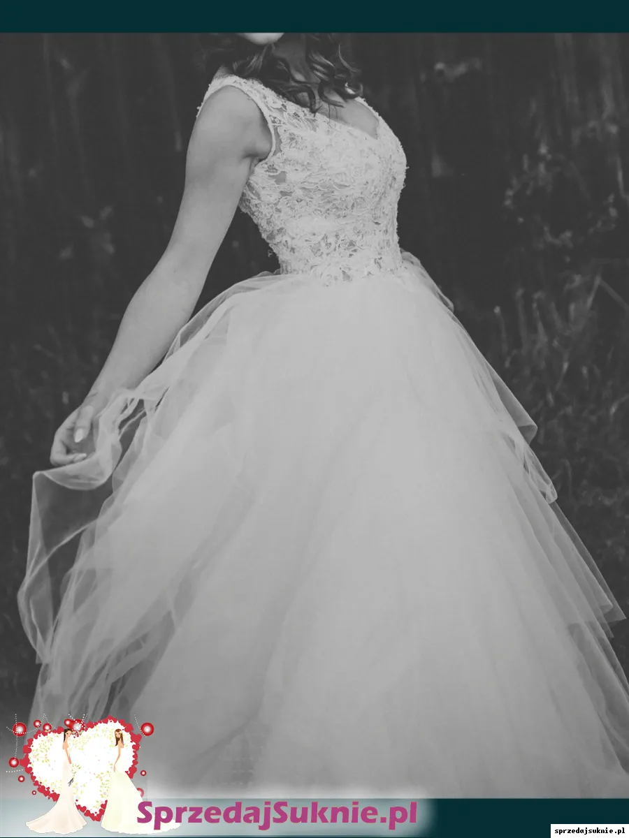 Sprzedam piekna suknie projektu Sylwii Kopczyńskiej. BardzO szczupła w talii, długość od ramion ok 140cm. Dlugi tren który można podpiąć albo obciąć. Duża ilość tiulu o różnej fakturze sprawia że suknia jest ponadczasowa. Lekka i zwiewna w tancu. Kolor to łamana biel. Suknia jest zaciągnięta w jednym miejscu ale niewidocznym (4 warstwa tiulu) w salonie koszt 5.500 zł