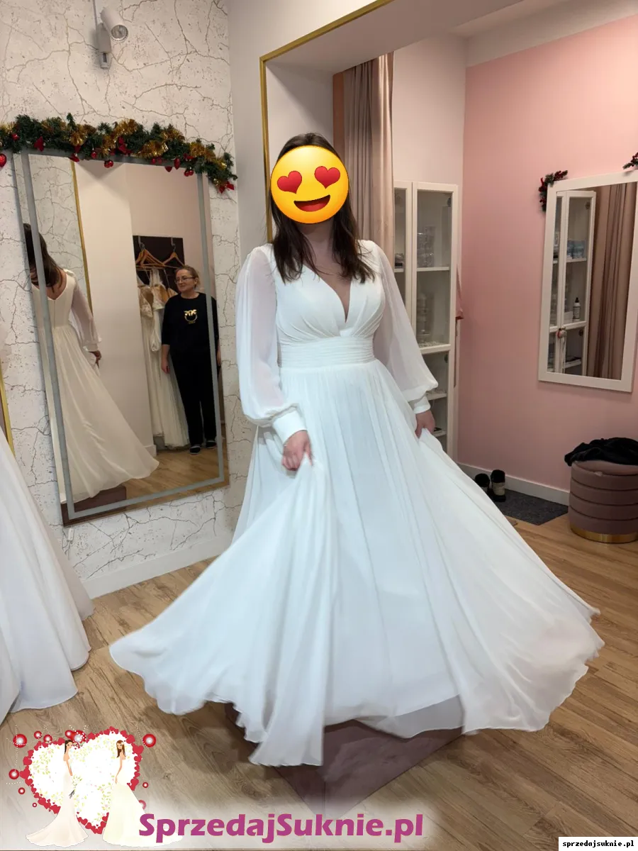 z długim muslinowym rękawem. Rękawy