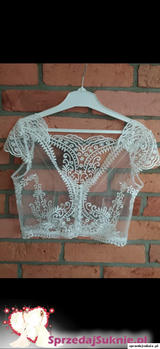 Suknia ślubna romantyczna boho, bolerko,tren,gipiura,Ivory, 38 M