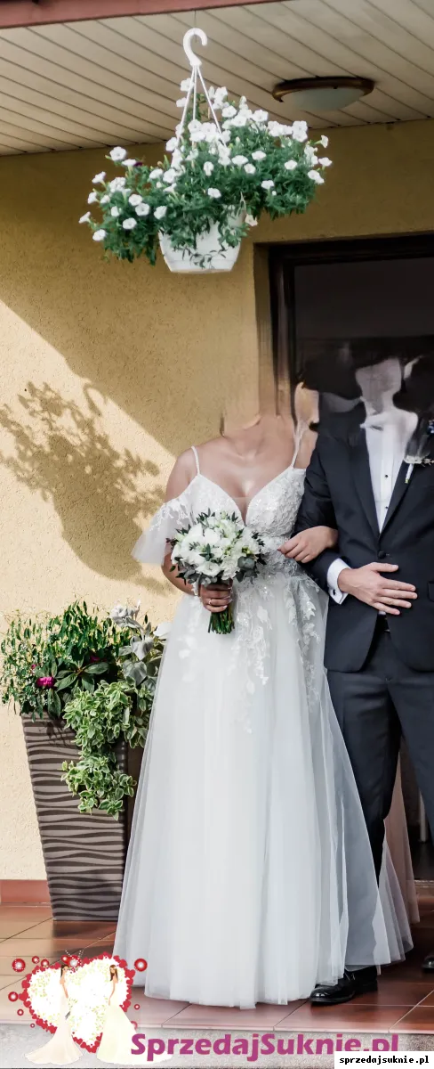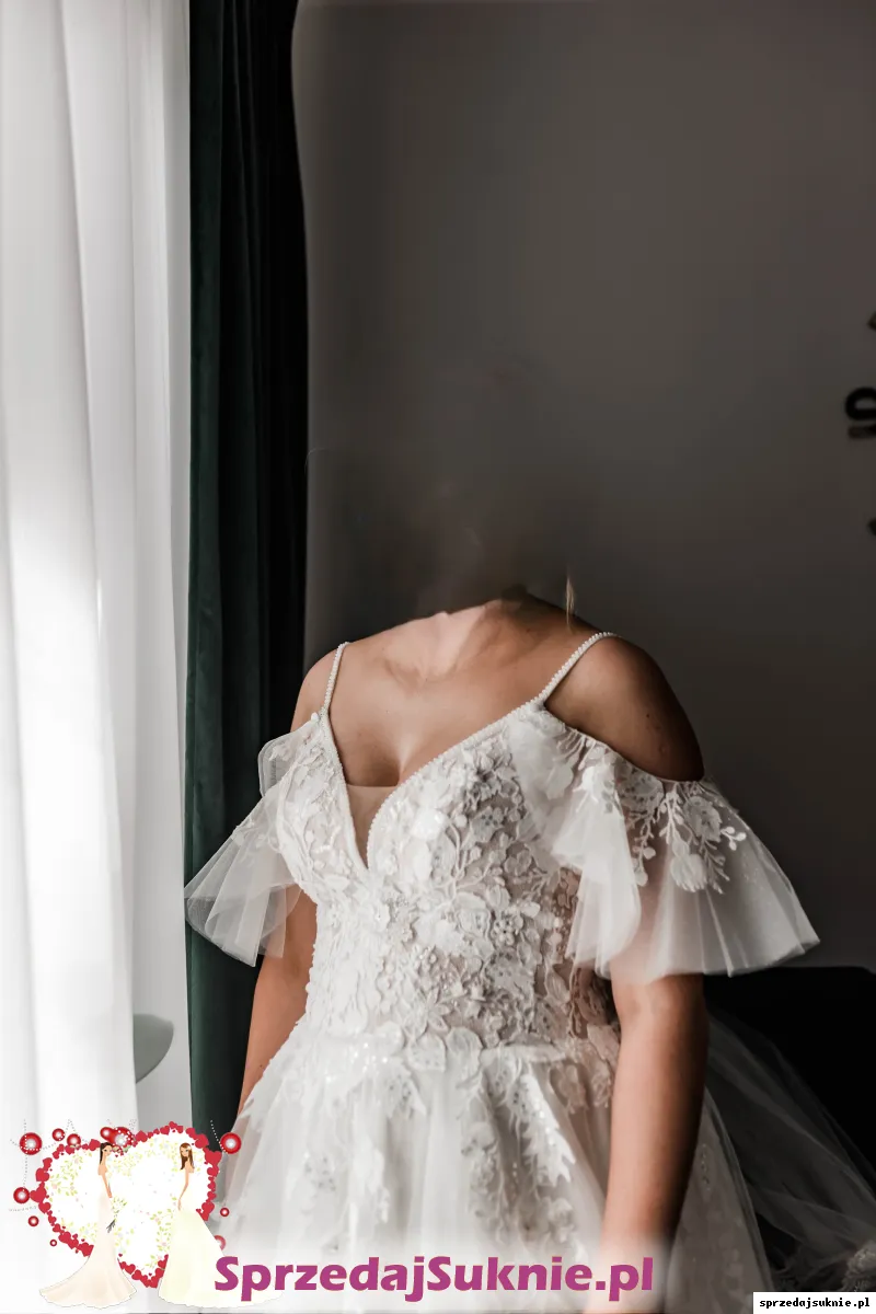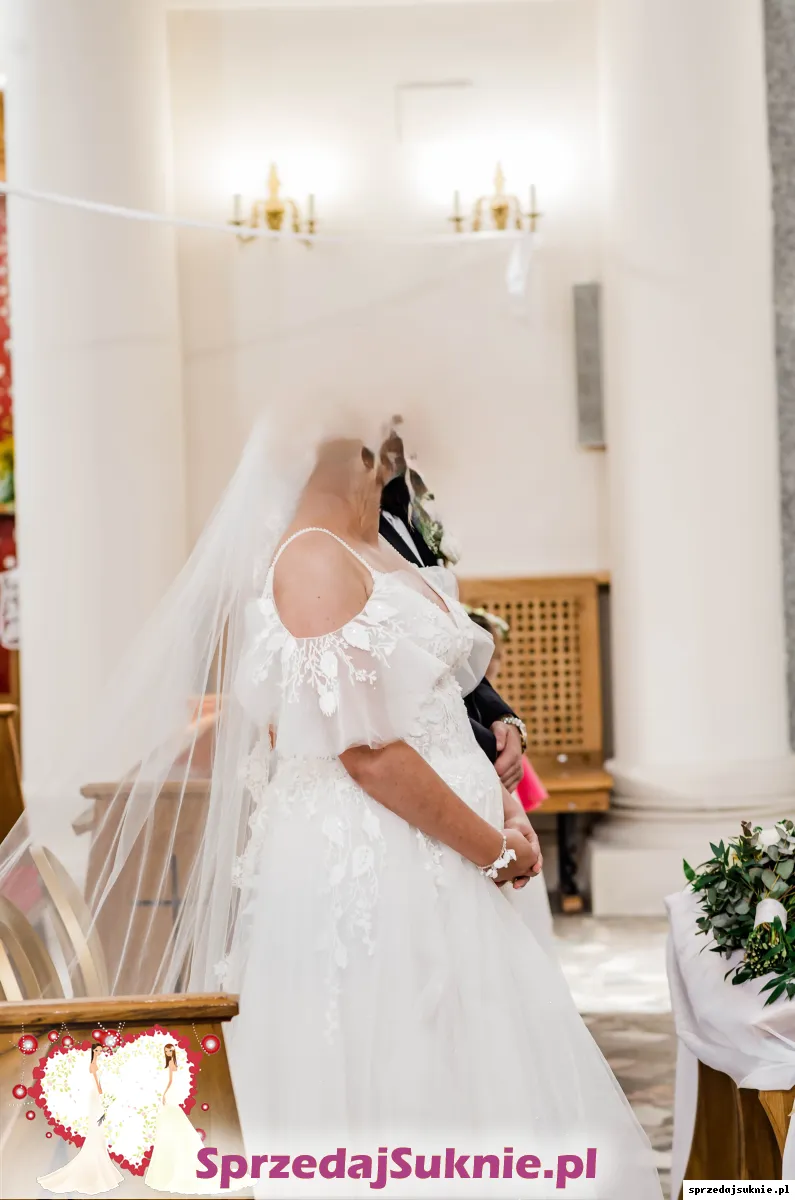 Sprzedam suknie ślubną zakupioną w salonie Gracja Mińsk Mazowiecki. Suknia ma odpinane rękawki i rozporek na prawej nodze.